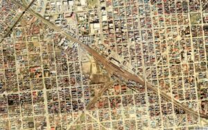 ▼2017年現在の国土地理院地図と1970年代の空撮写真を重ね合わせた。