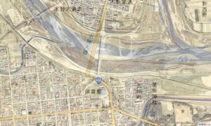 ▼Fig-02:2017年現在の国土地理院地図と1970年代の空撮写真を重ね合わせた。