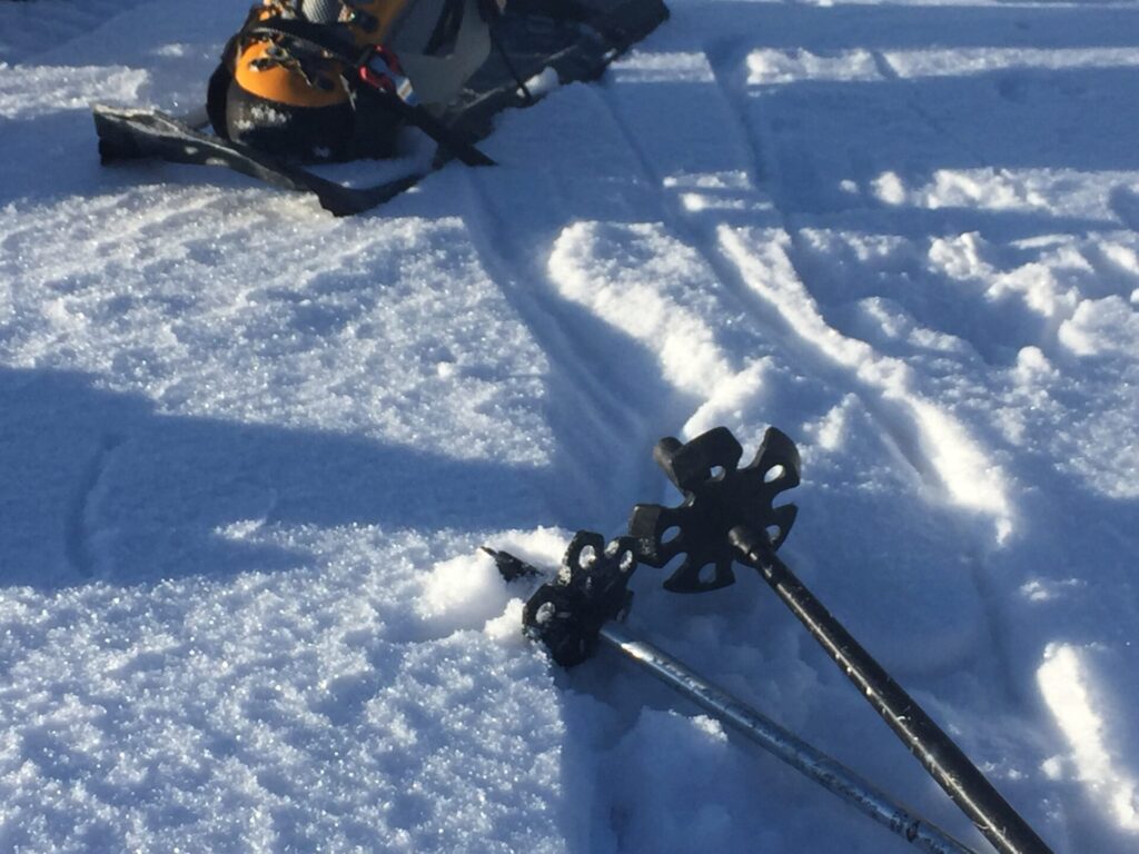 ここで、筋肉氏から借りたストックがどうにも片方伸びないため、