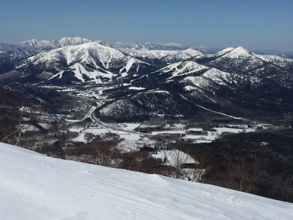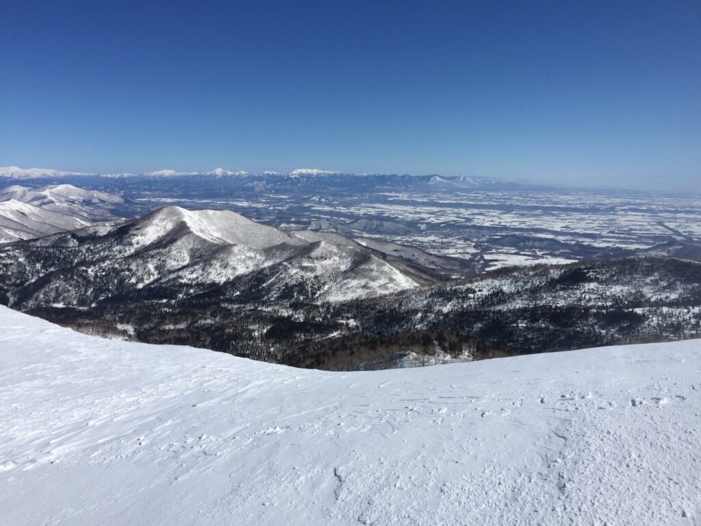▼狩振岳山頂に到着:トマムスキー場やトマムインターチェンジが見える。