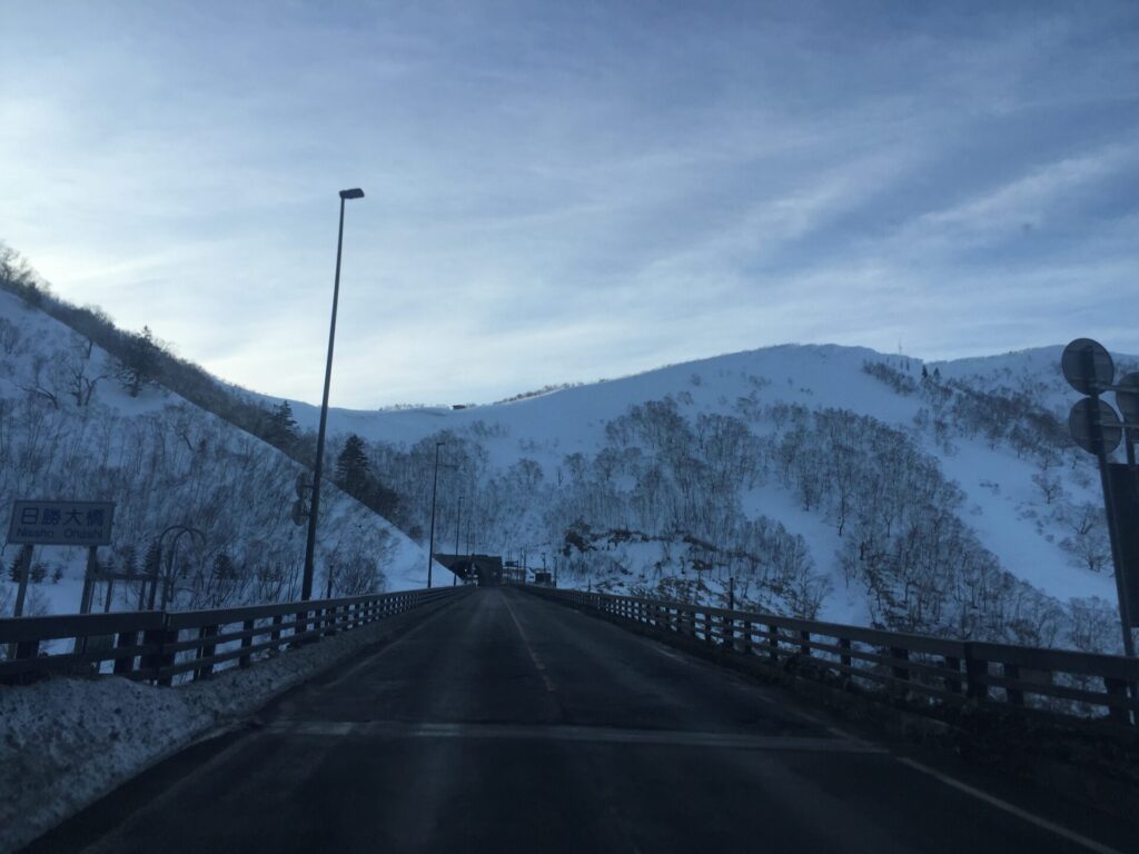 ▼振り返り「日勝大橋」ペケレベツ岳が奥に見える。