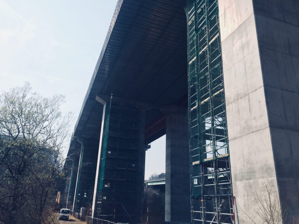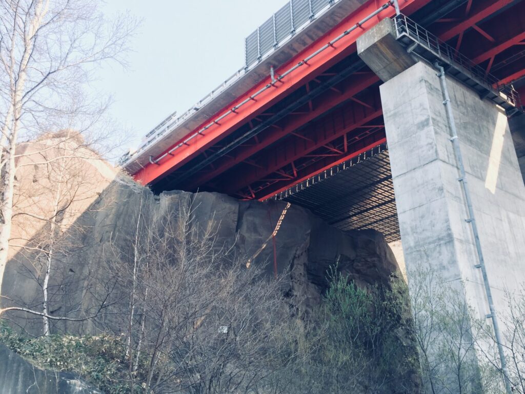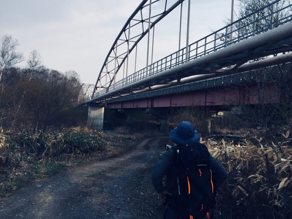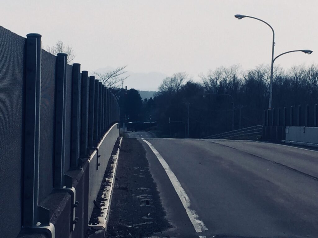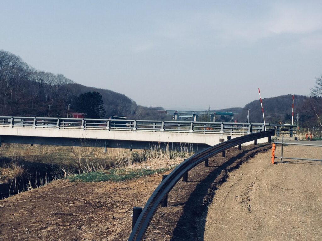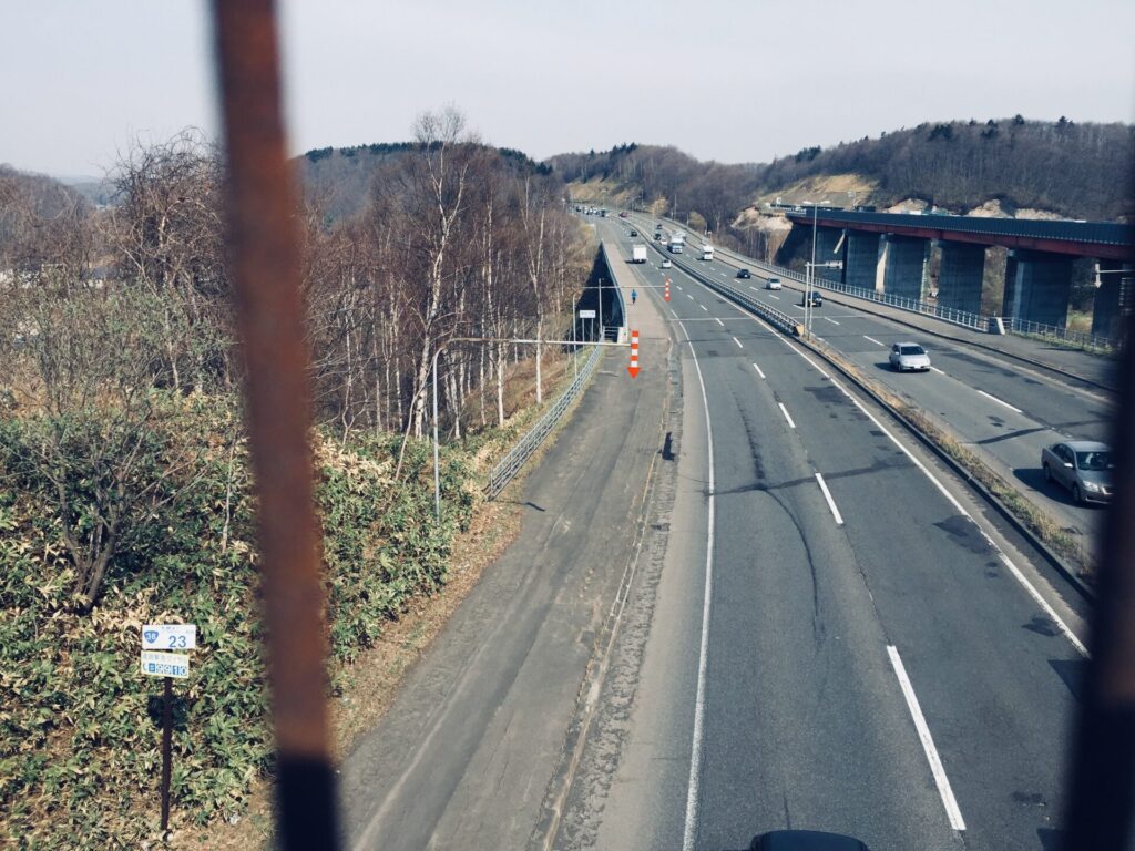 ▼道央自動車道の橋梁下まで来た。橋梁補修中。