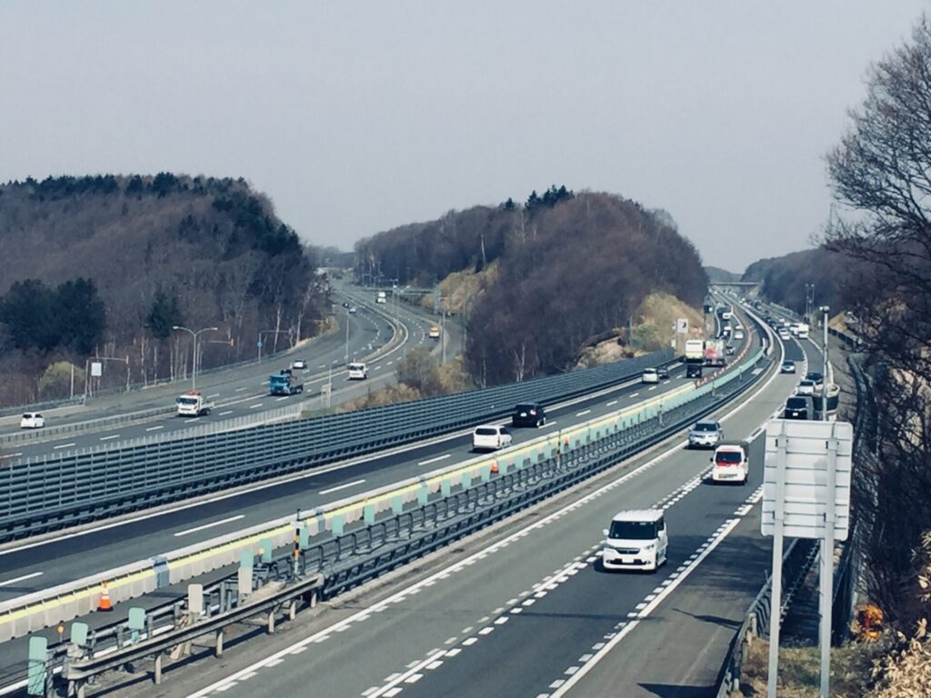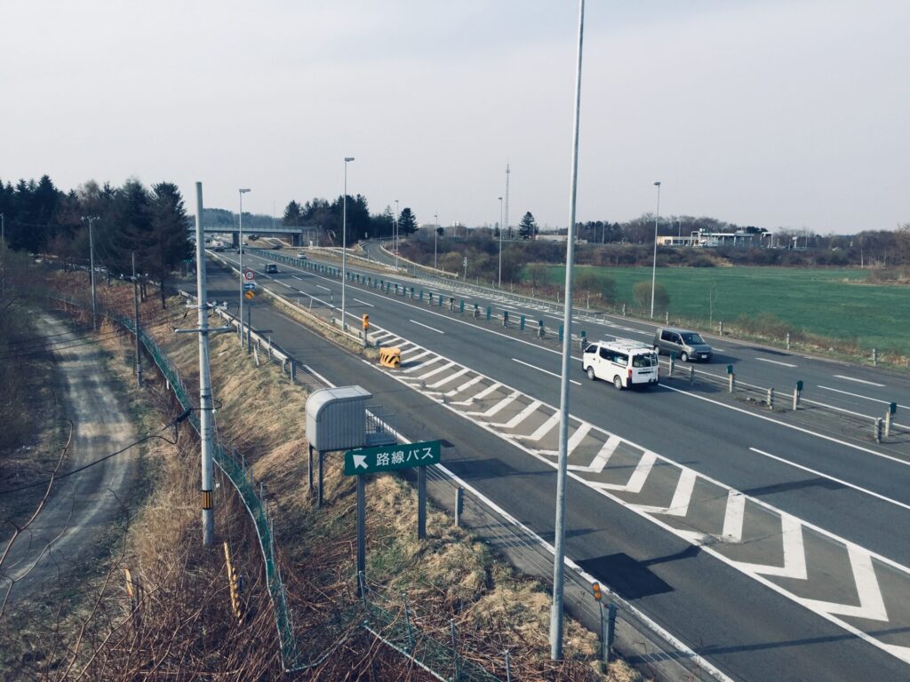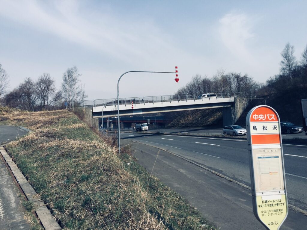 ▼道央自動車道をくぐる。恵庭ICの案内標識みえる。