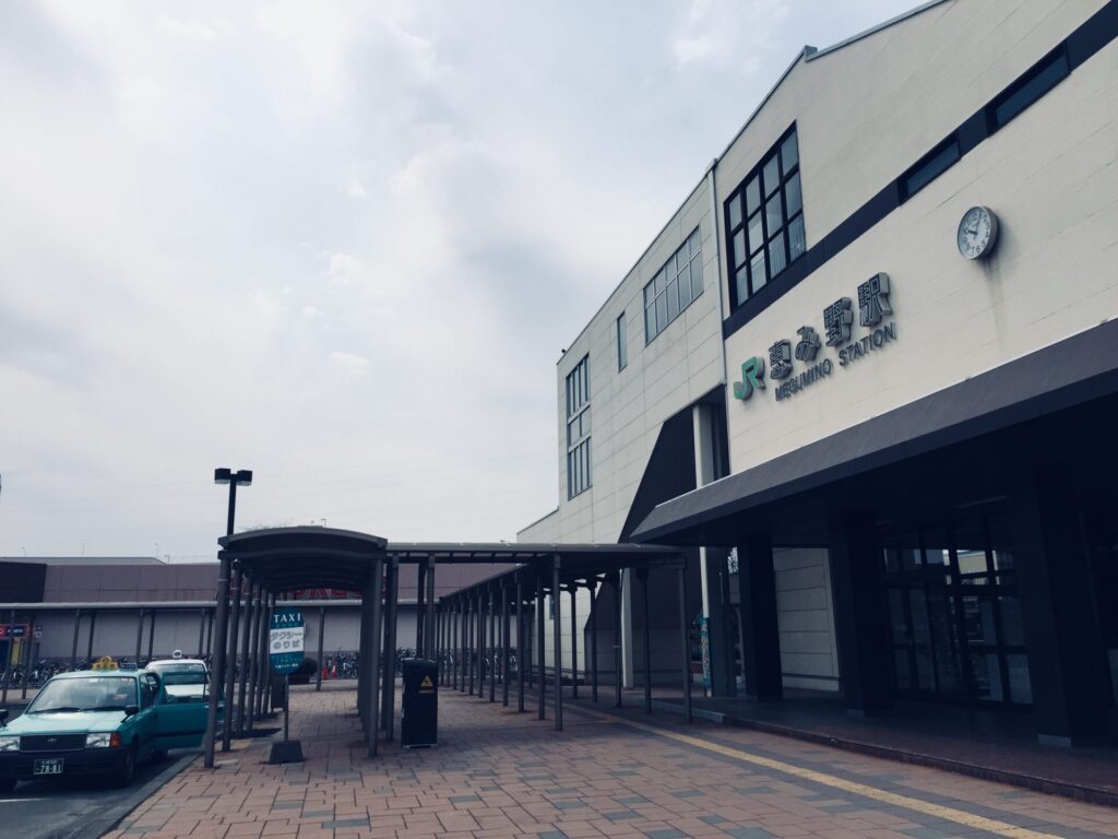 ▼恵み野駅:ここからSTAGE-3 花のまち「恵み野」・漁川(いざりがわ)コースのスタート