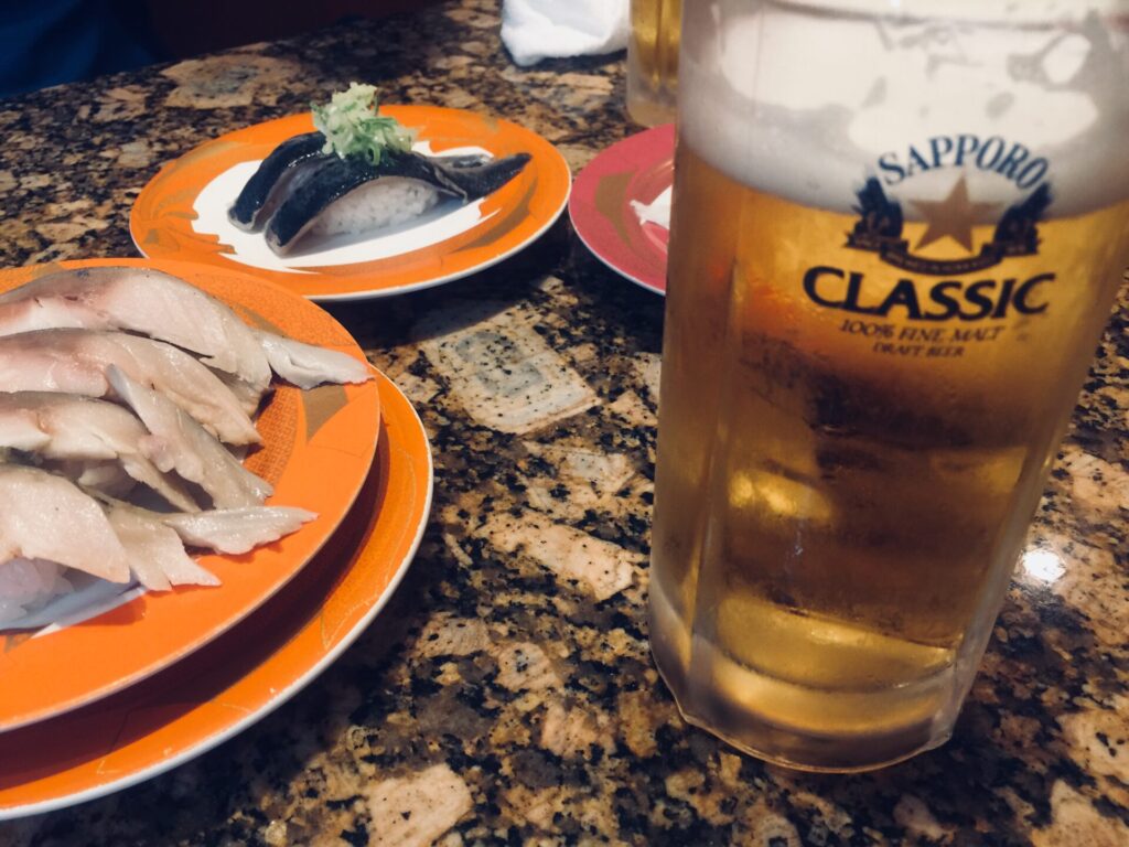 ▼道の駅にもどり回転寿司「旬楽」で夕食