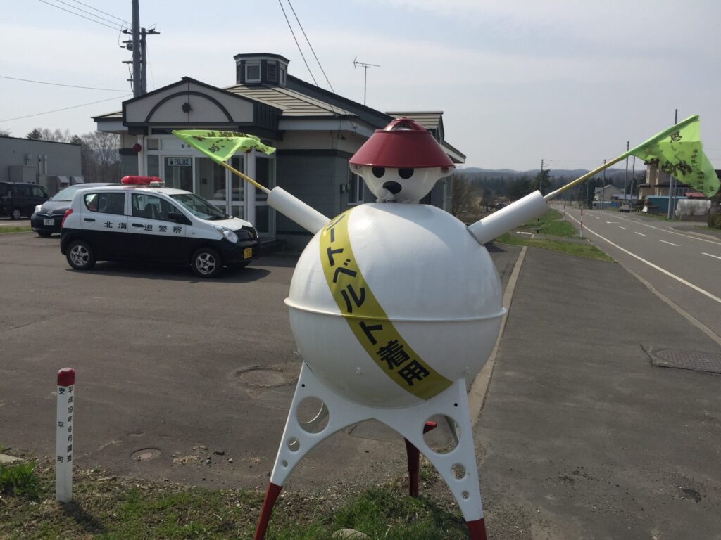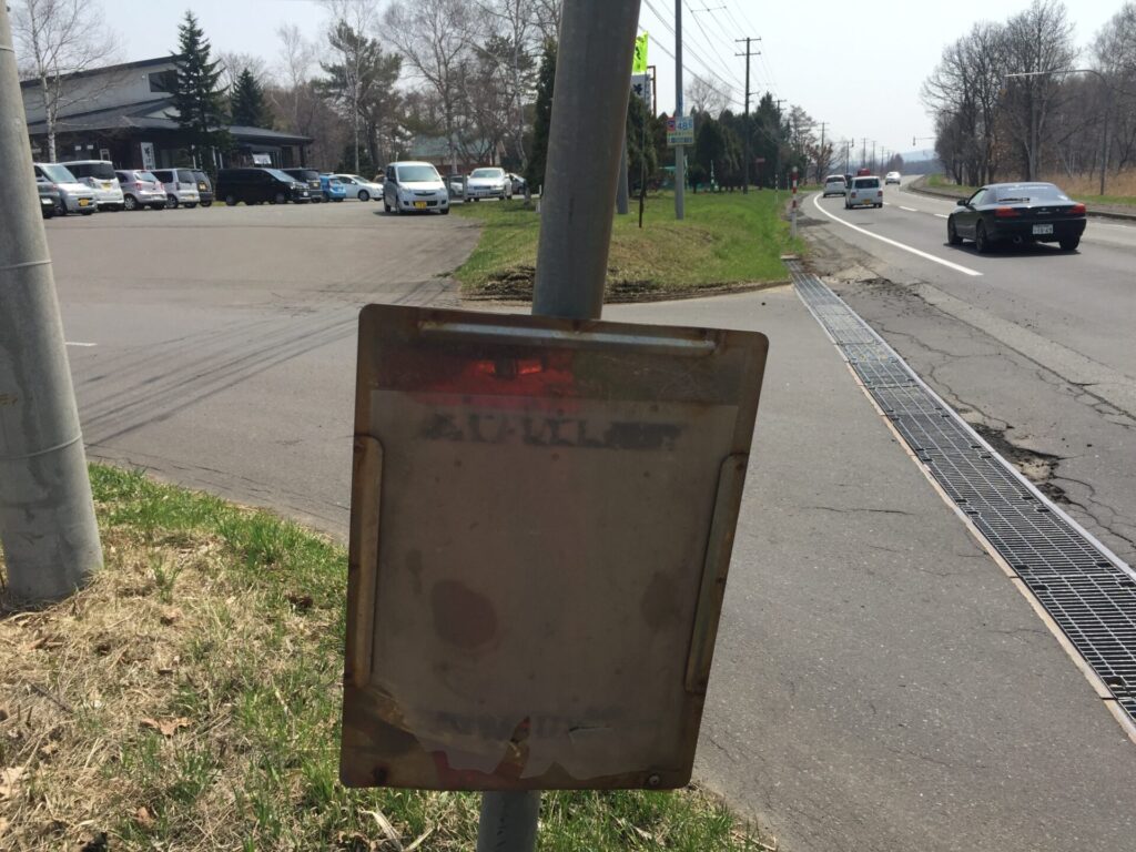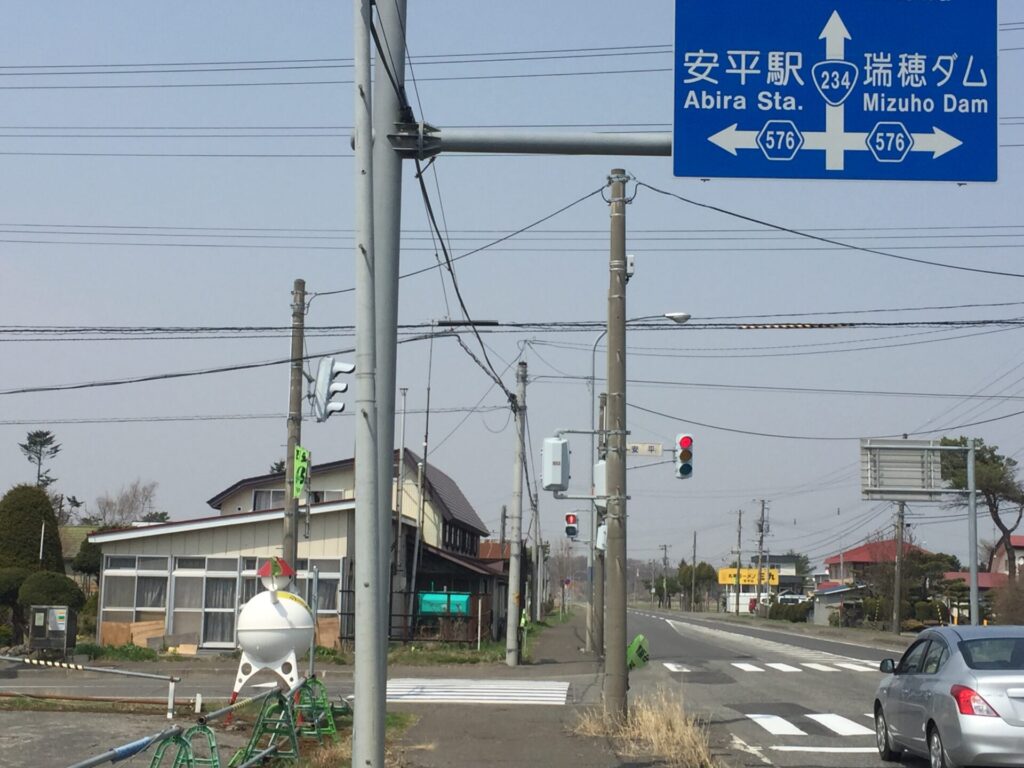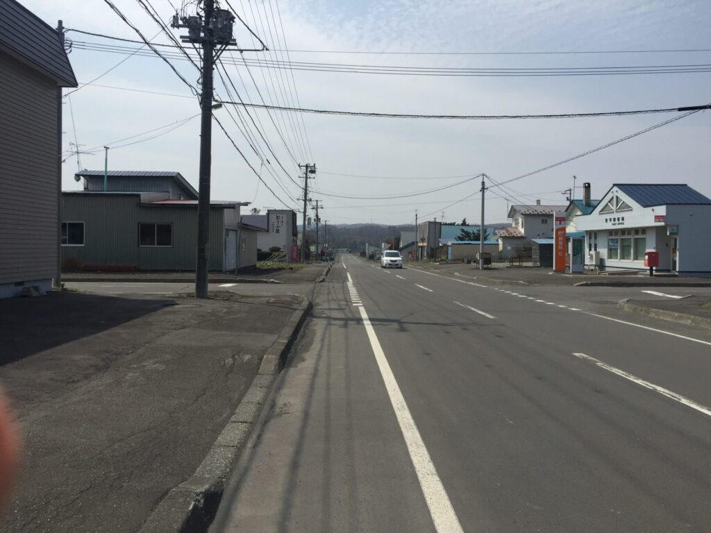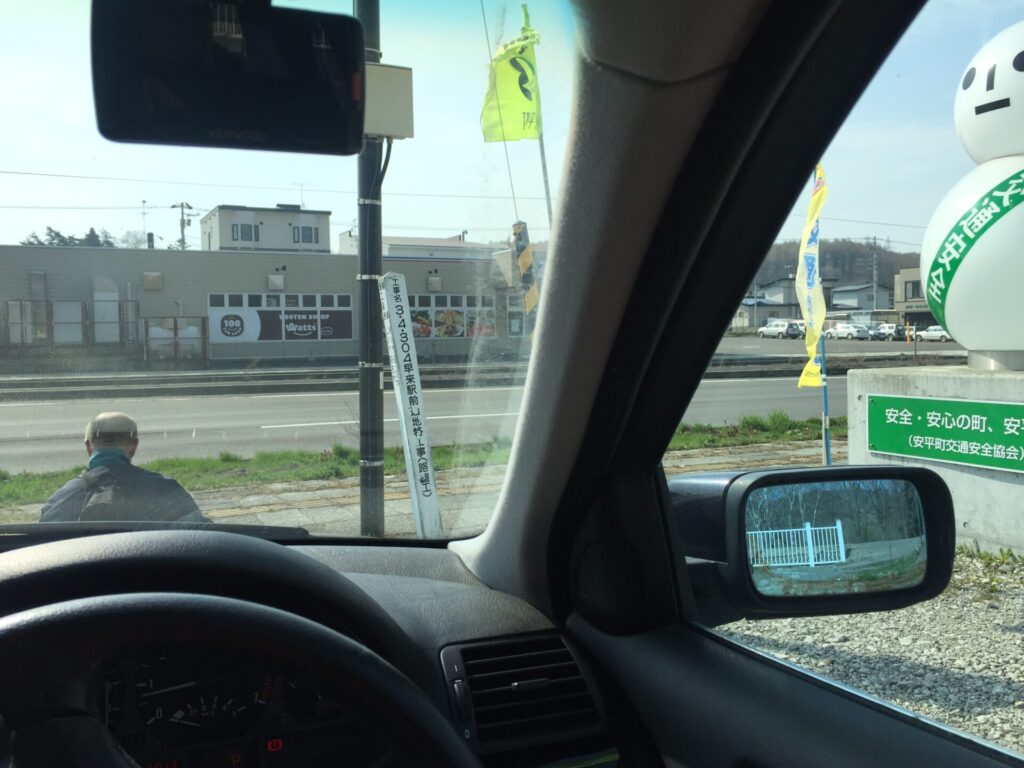 ▼早来駅前に車を止めた瞬間にじいさんが縁石に腰掛けた。全く気づいていない。(笑う)