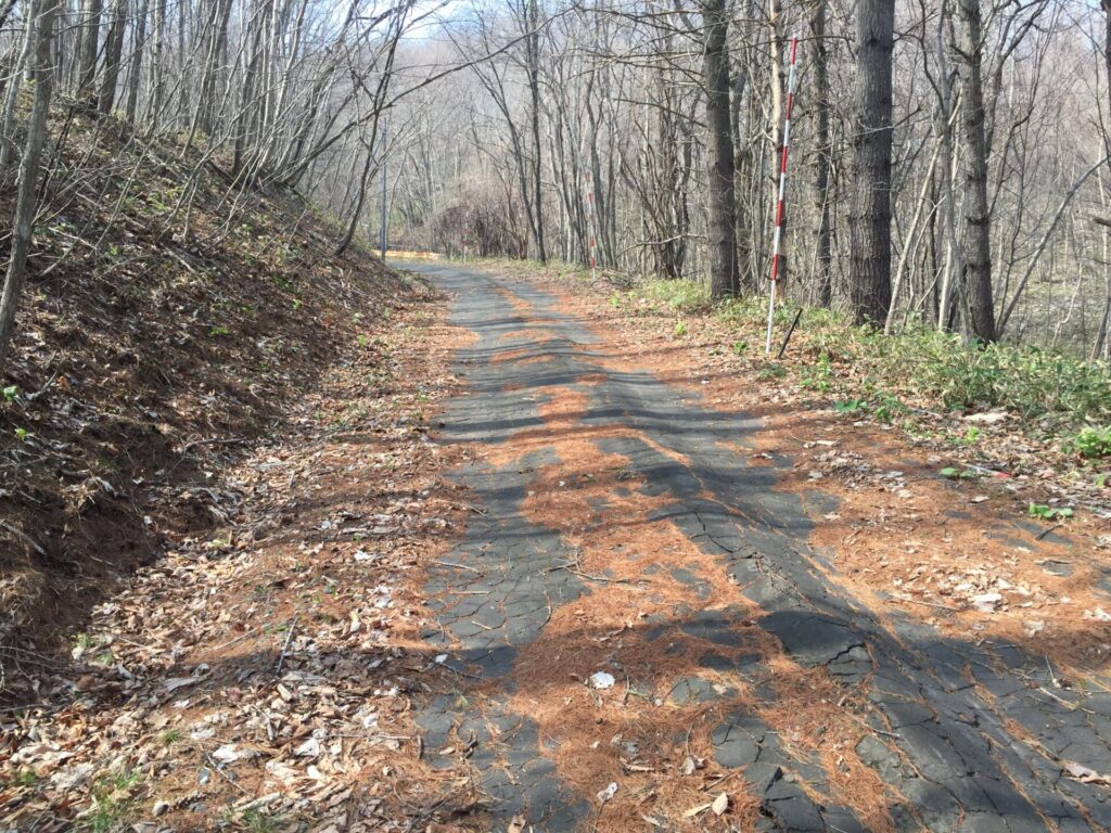 ▼以前ここら当たりからゴルフ場のアクセス道路に下ったような木がする。