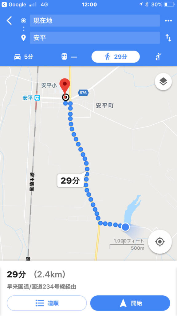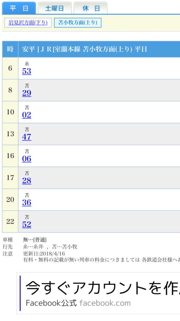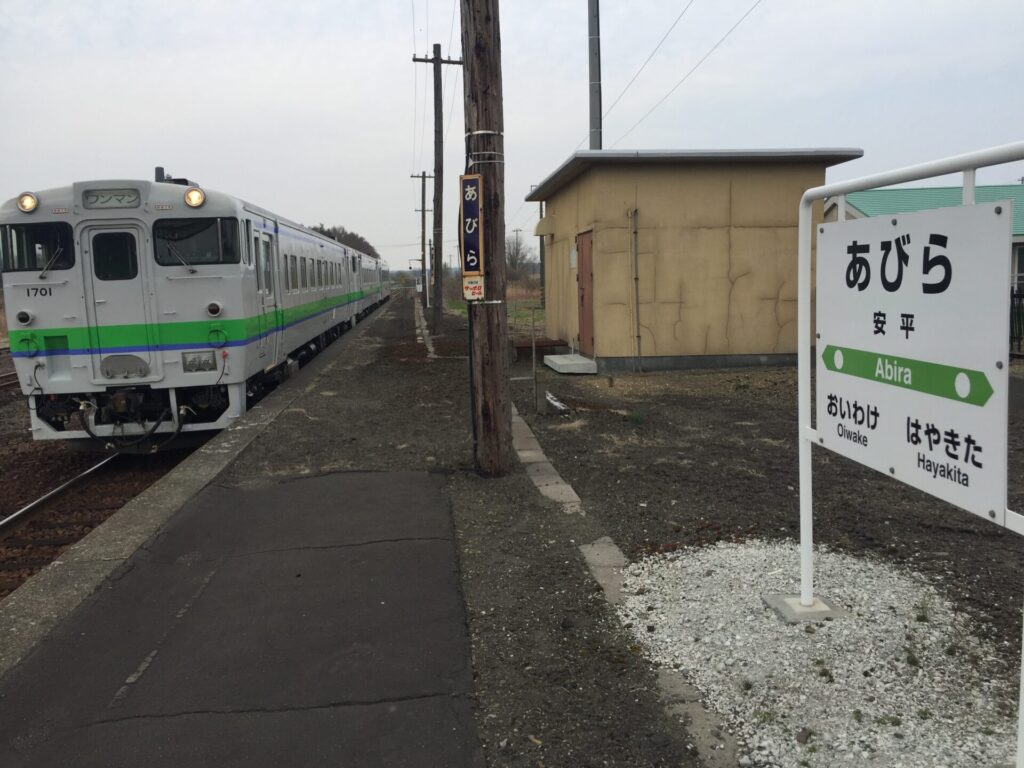 ▼鈴蘭山に行ったなら、早来駅に戻るより安平駅の方が近いかもしれない。安平駅から苫小牧方面行きの列車時刻を調べる。13:47は適当そうだ。
