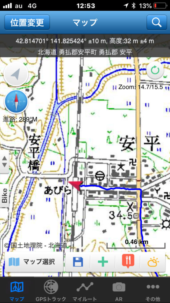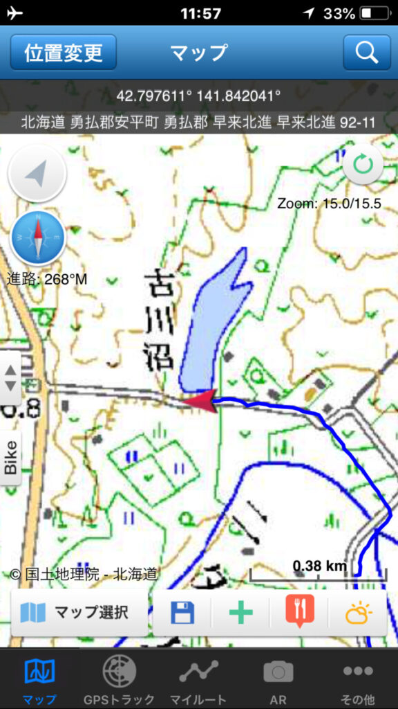 ▼橋が架かってたのか。1.5kmは、ショートカットできたなー