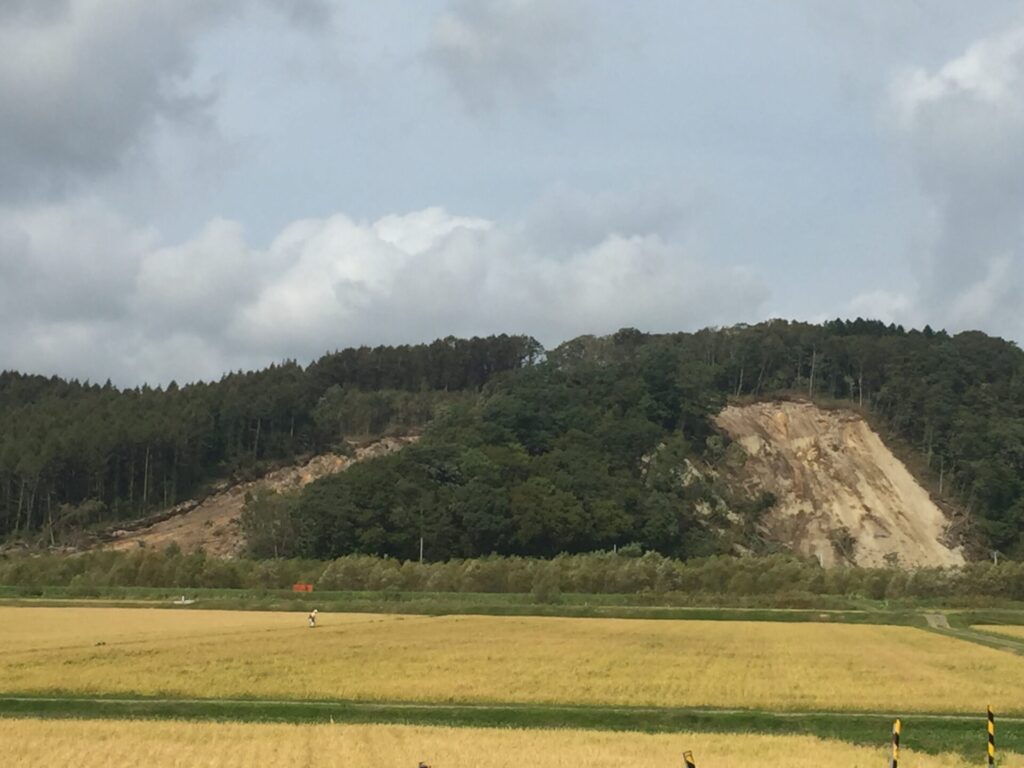 ▼被災した叔父の家から厚真川を挟んで吉野の法面