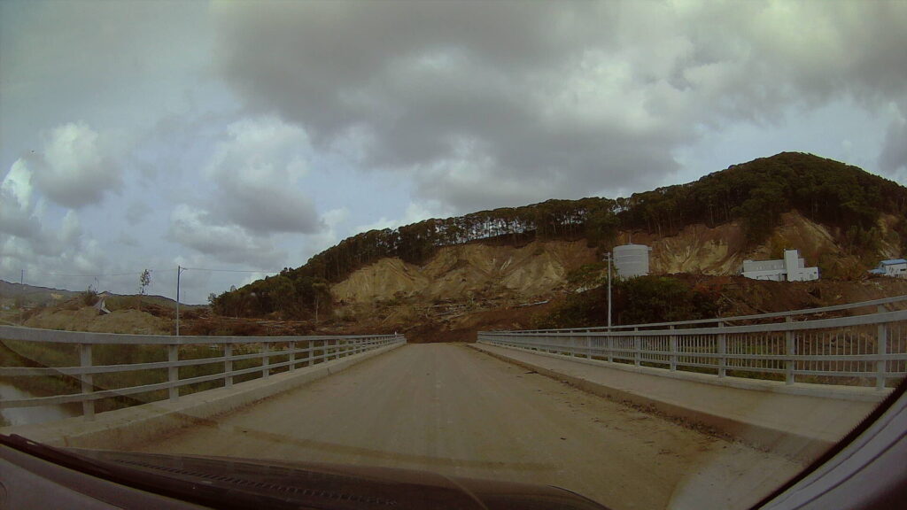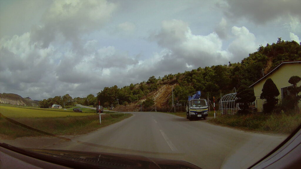 ▼厚真と鵡川の間の道道。被災しているのは、決まって盛土箇所!