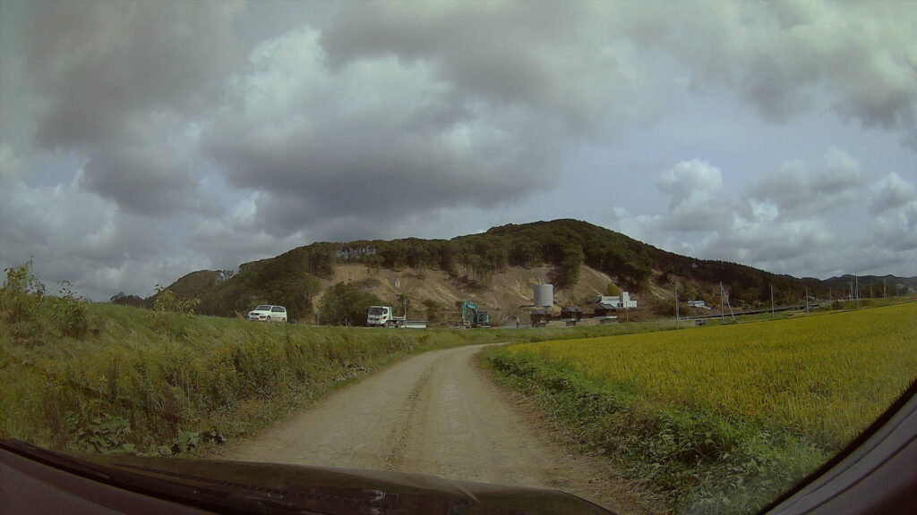 ▼母親の実家の田んぼがあったところは、木が倒れていた。