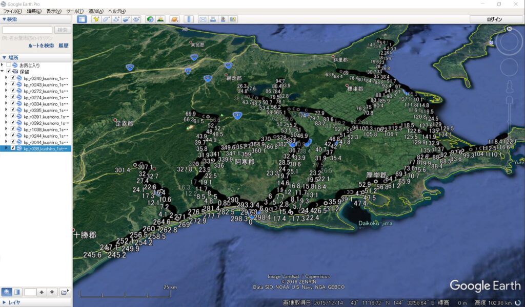 釧路開発建設部管内の百メートル間隔キロポストのKMLデータの要望に応えます。