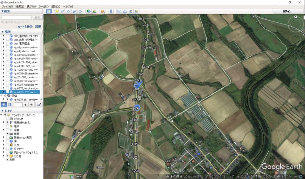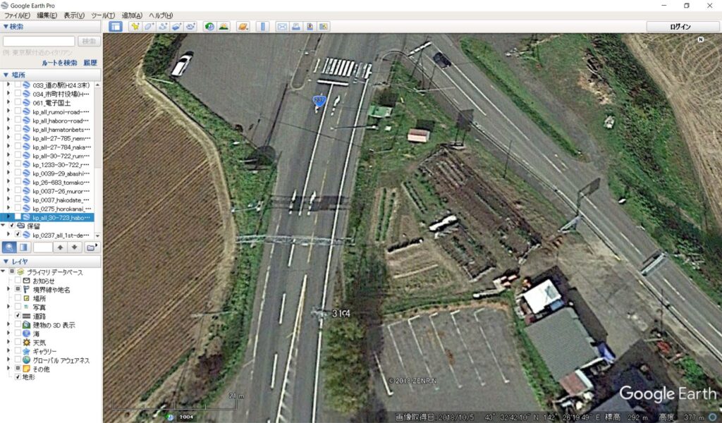 ▼市町村境などに着目し、ストリートビューで、道路事務所の管理範囲を示す標識を探す。
