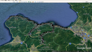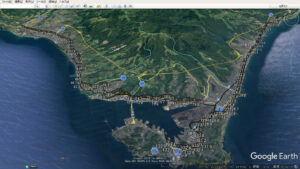 ▼DLしたKML形式データは、Google Earthにドロップするだけで、この画像のように表示される。