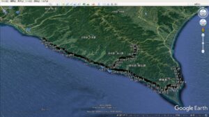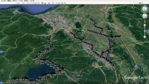 ▼DLしたKML形式データは、Google Earthにドロップするだけで、この画像のように表示される。
