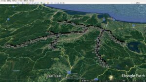 ▼DLしたKML形式データは、Google Earthにドロップするだけで、この画像のように表示される。