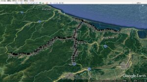 ​​▼DLしたKML形式データは、Google Earthにドロップするだけで、この画像のように表示される。