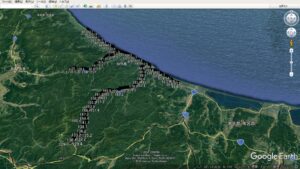 ​​▼DLしたKML形式データは、Google Earthにドロップするだけで、この画像のように表示される。