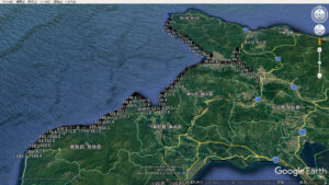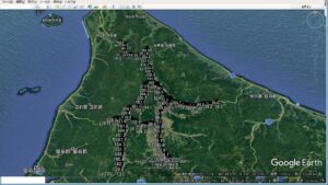 ▼DLしたKML形式データは、Google Earthにドロップするだけで、この画像のように表示される。