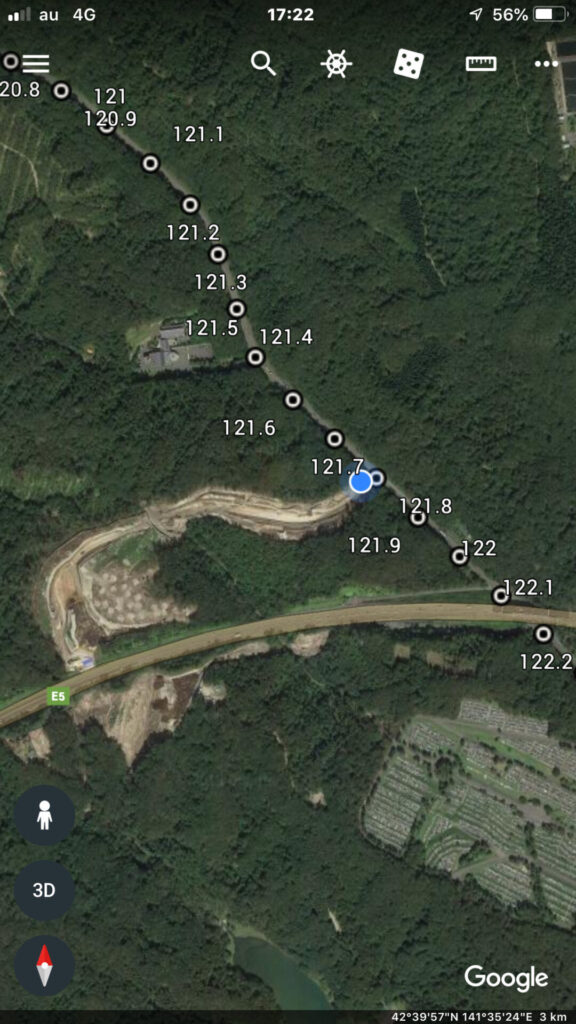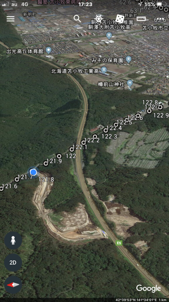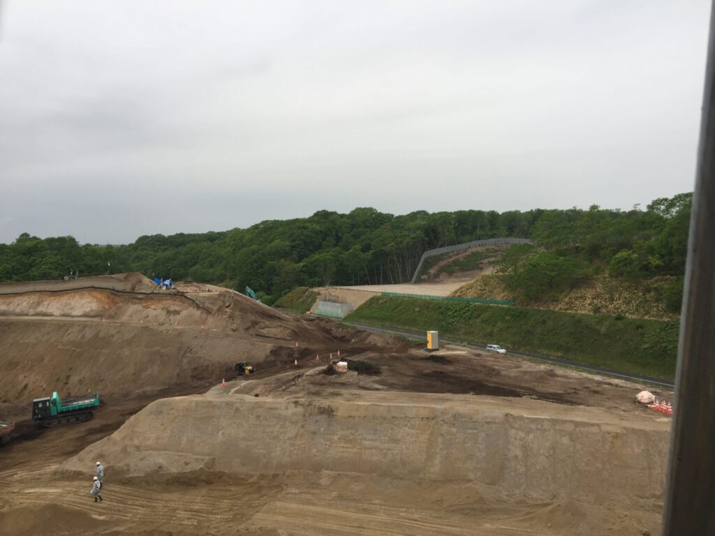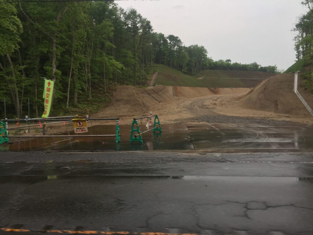 ▼高丘1号橋より:苫小牧中央ICの工事が見える。ランプ橋の下部あり。