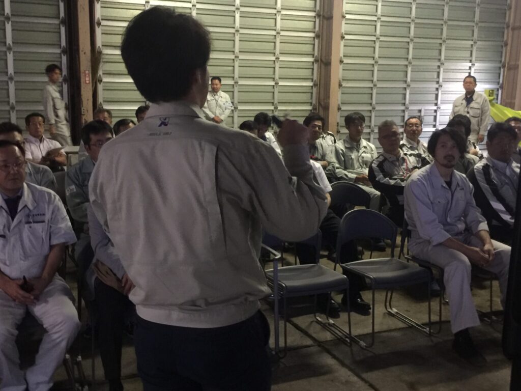 机も無しで椅子のみ。(配置準備が楽! 机がない分、密集度が高くなり良い受講写真が撮れる。)