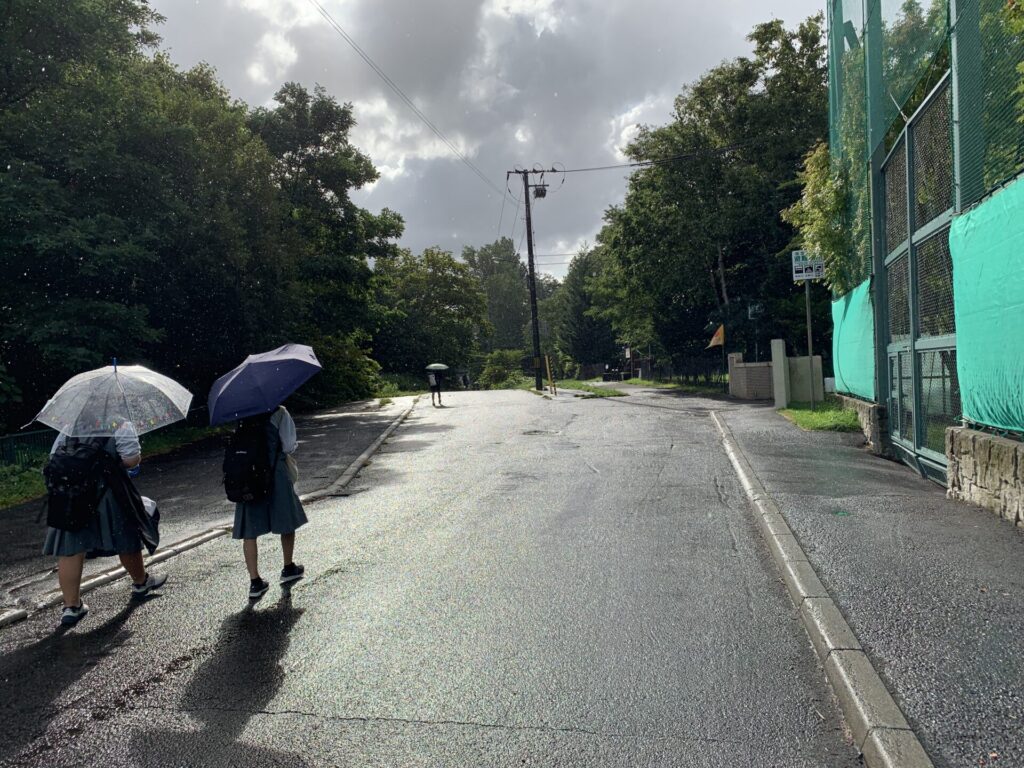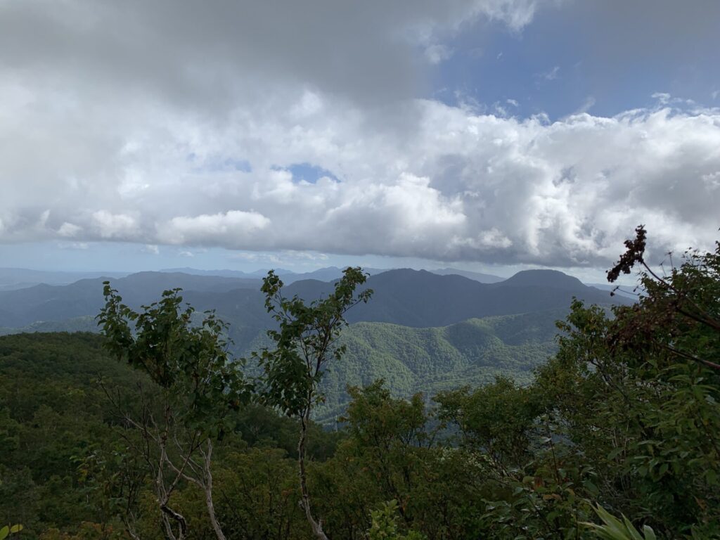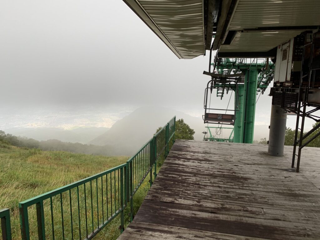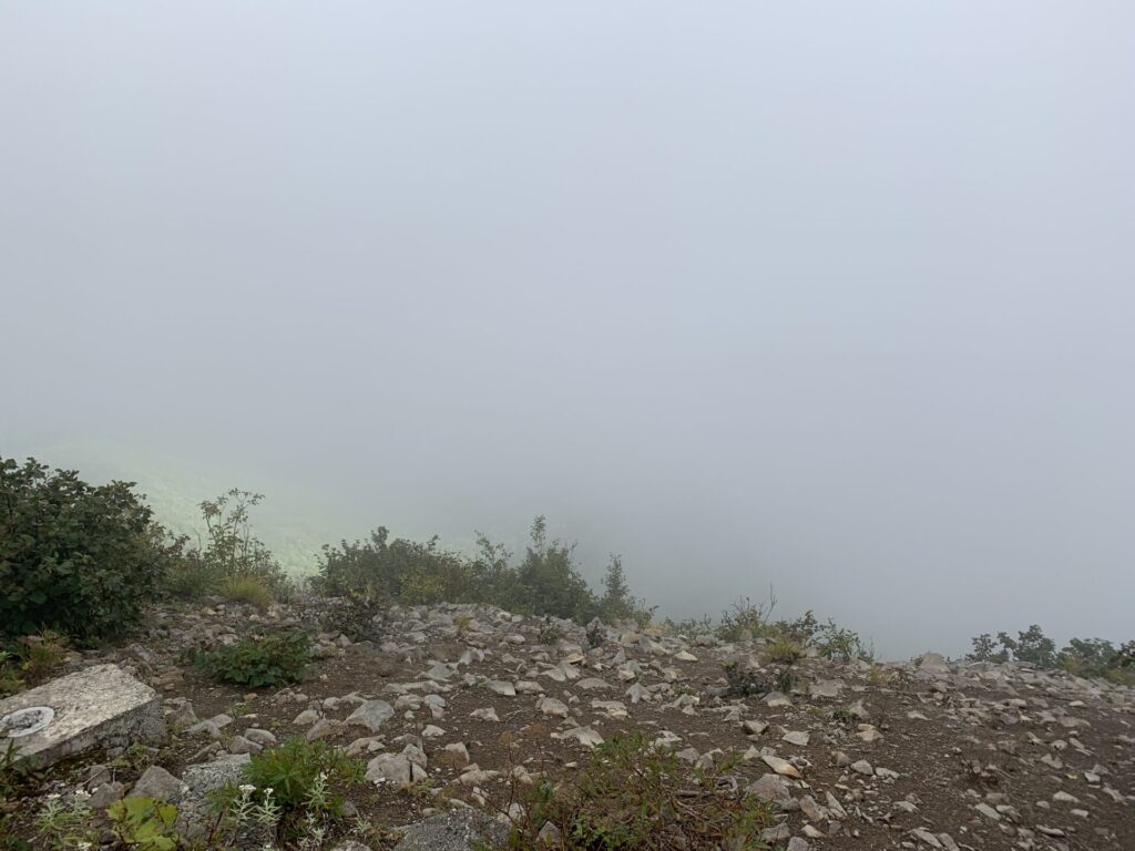 ▼何も見えない展望:大粒の冷たい雨が突然降り出した。