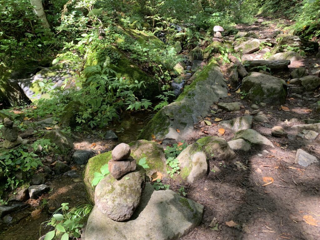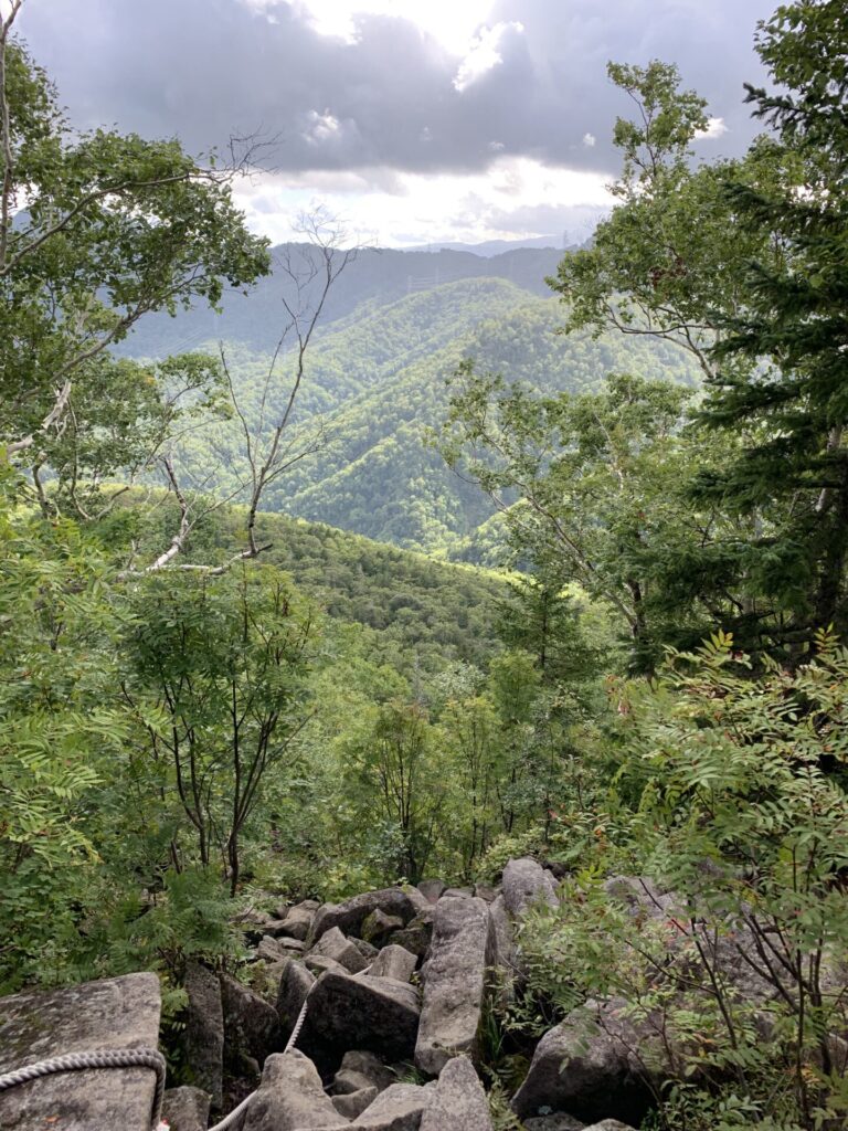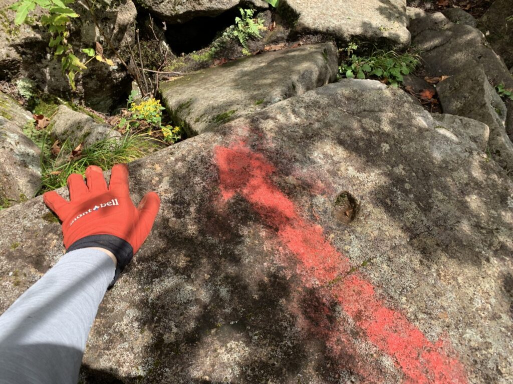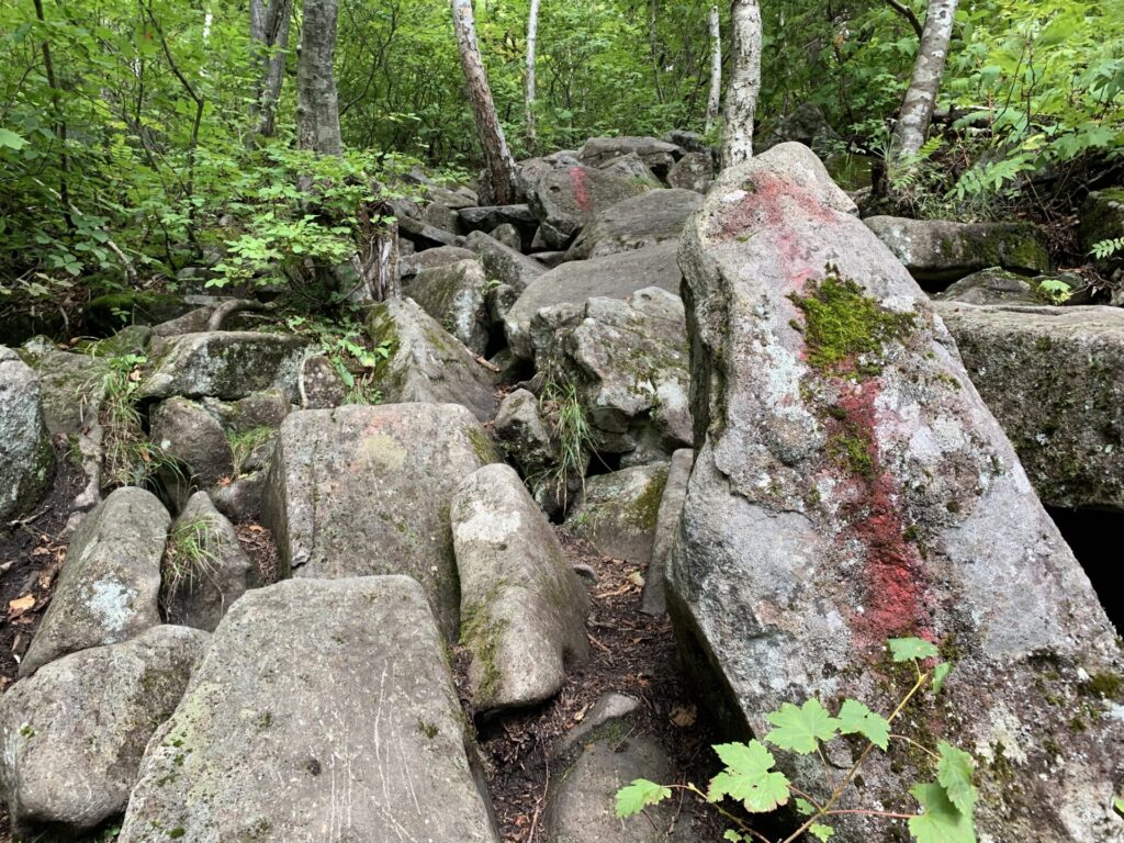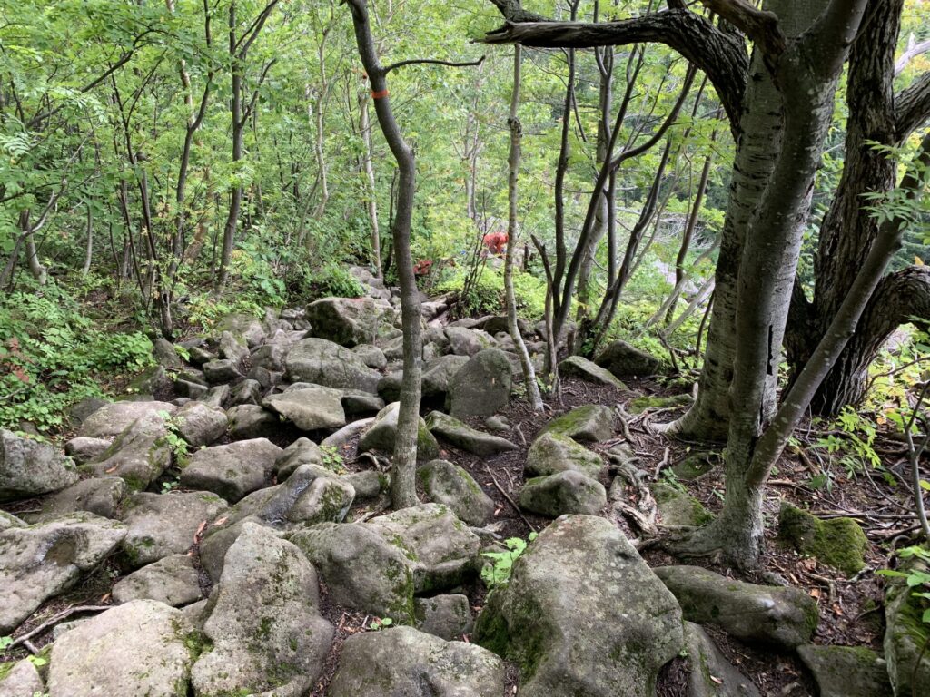 ▼ちょうどいい!下山のひとに聞くとこれからがガレ場の本領発揮らしい。(-_-)