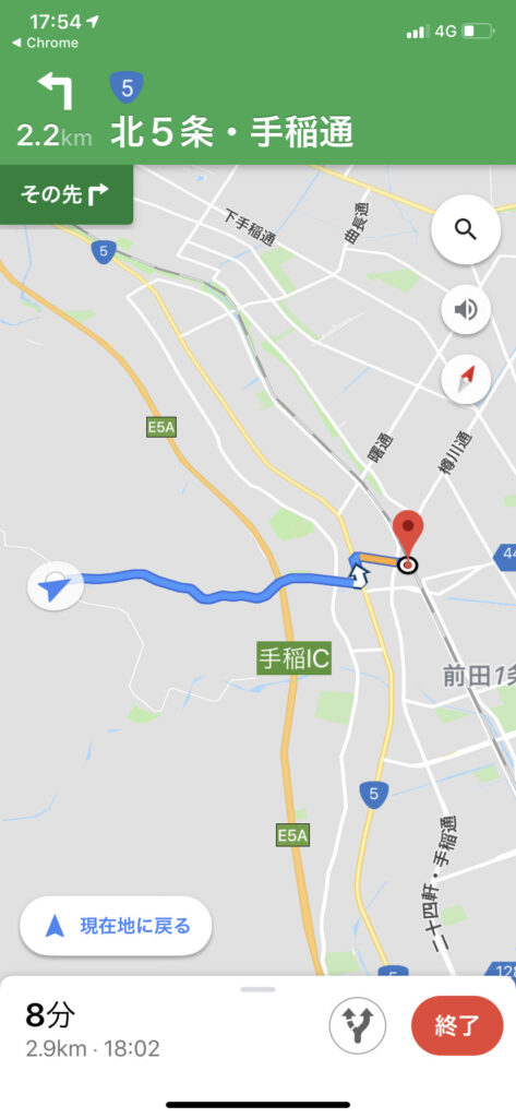 ▼グーグルで手稲駅までの距離を尋ねてみると恐ろしい距離が…やる気が↓