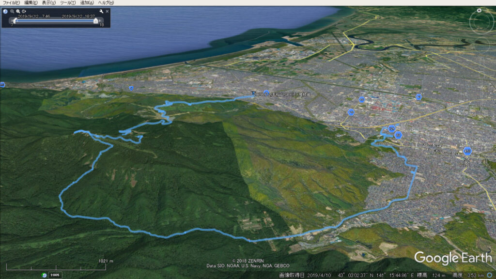 最低/最高高度: 14 m / 1013 m (高度差999m)