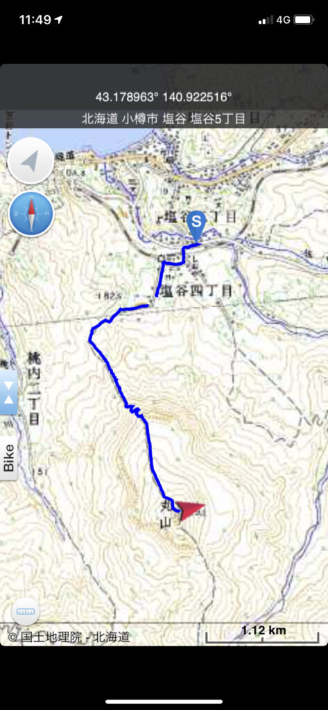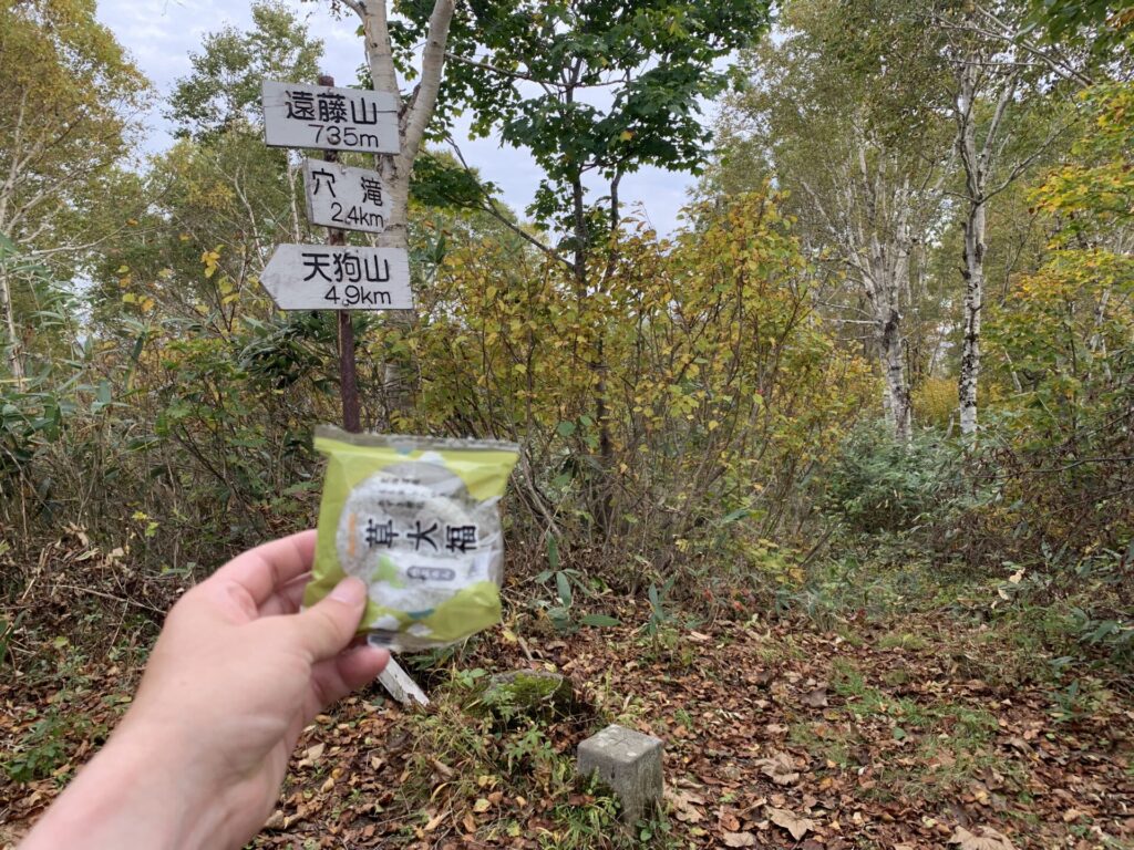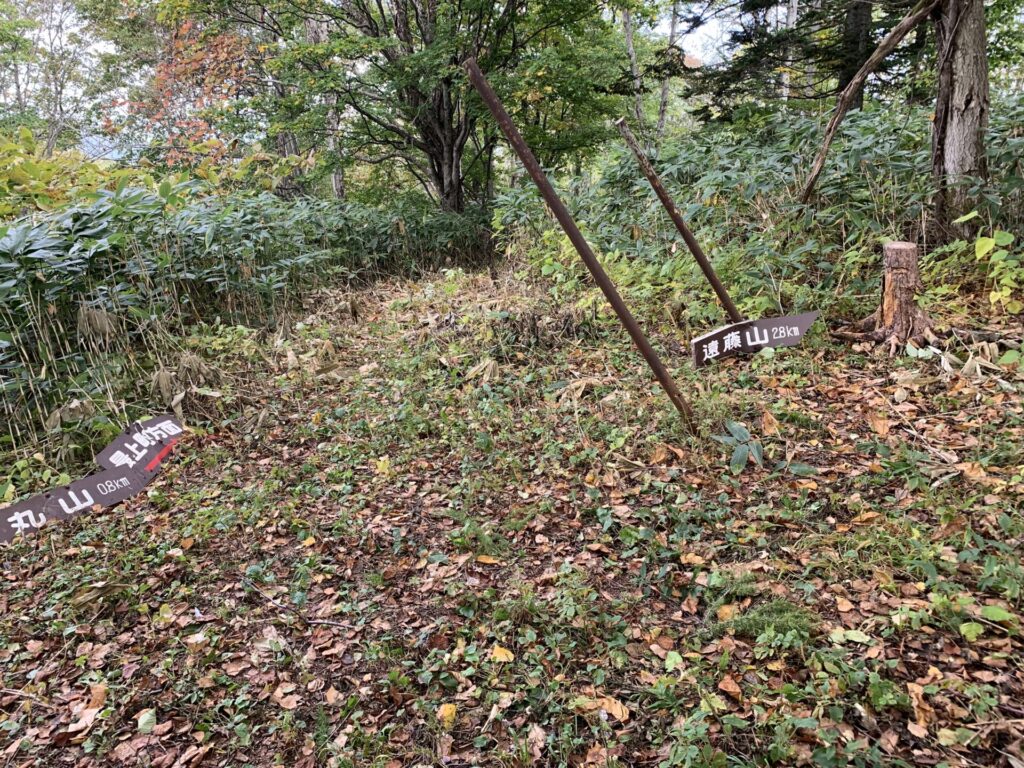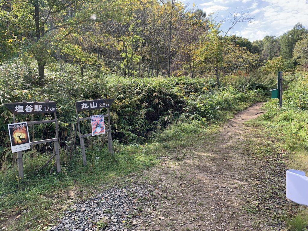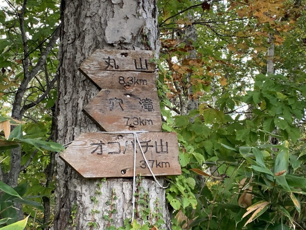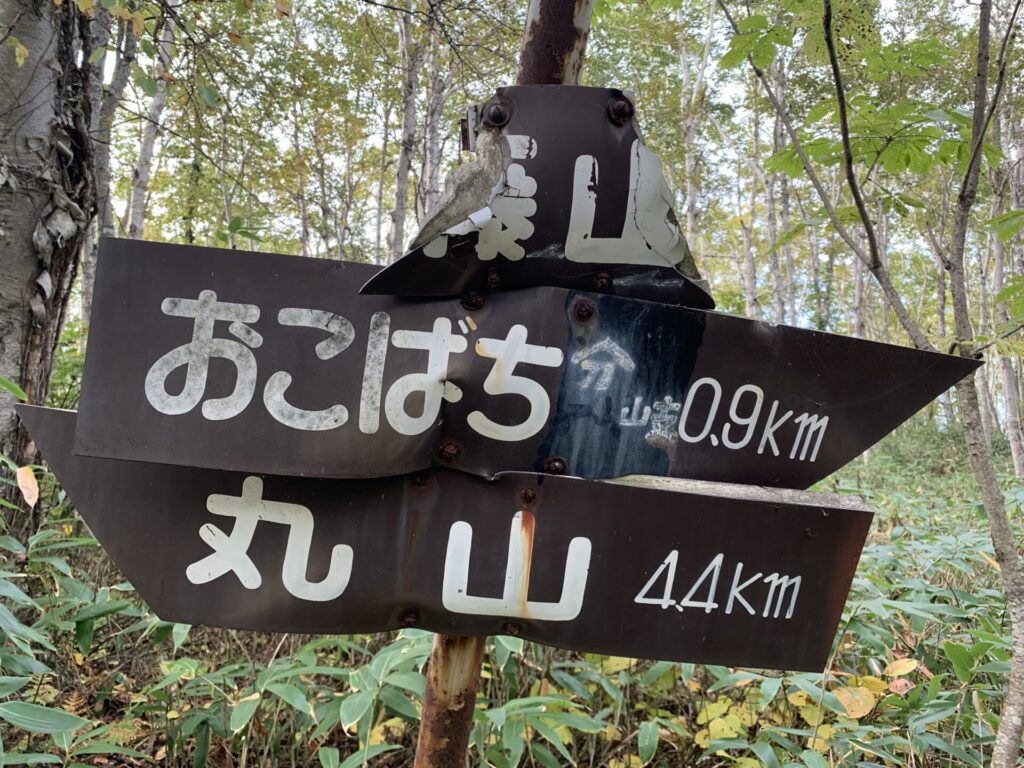 ▼塩谷丸山まで8.3km、於古発山(おこはちやま)まで3.7kmとある。