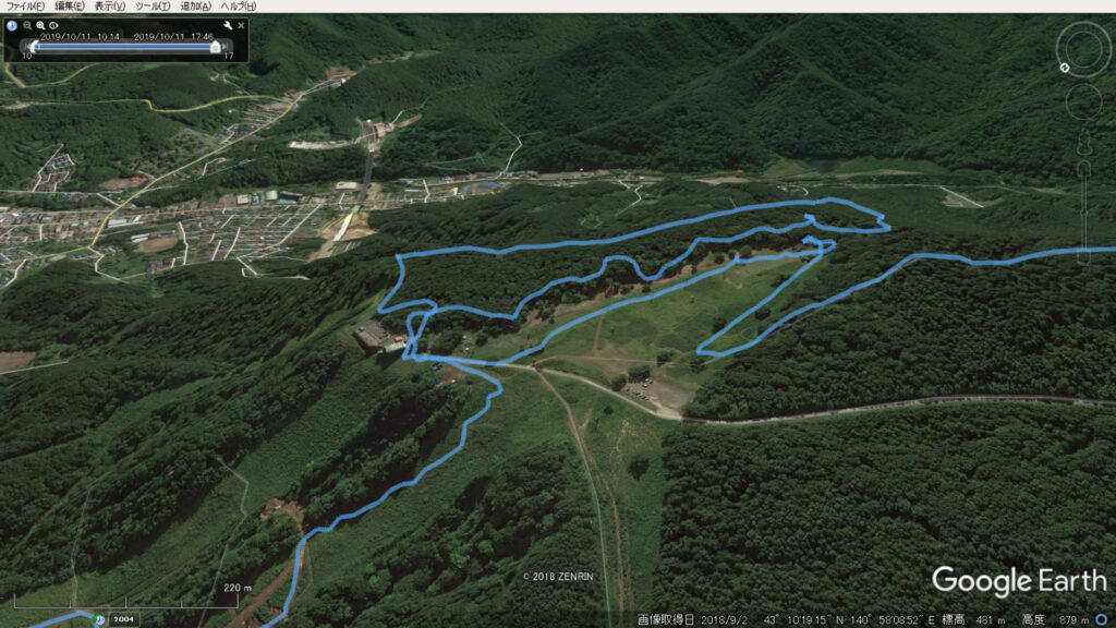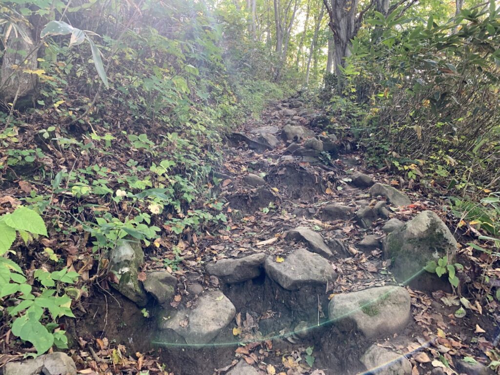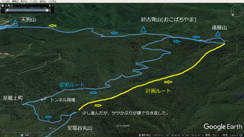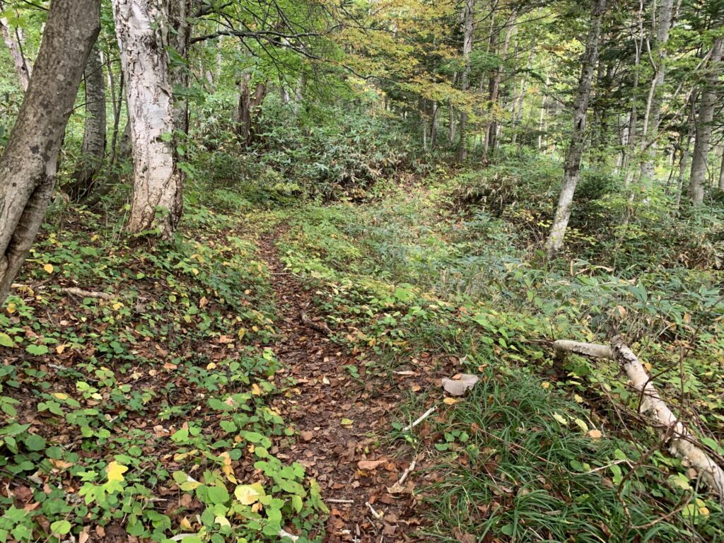 ▼最上町方面へいったん沢へ降り、再度、於古発山(おこはちやま)へ登り返す。200mのリフト量を損する。