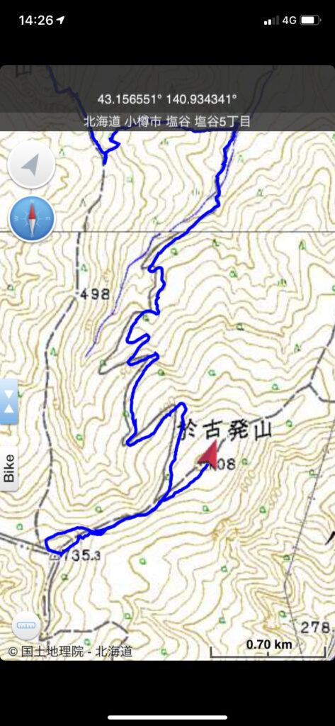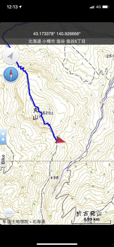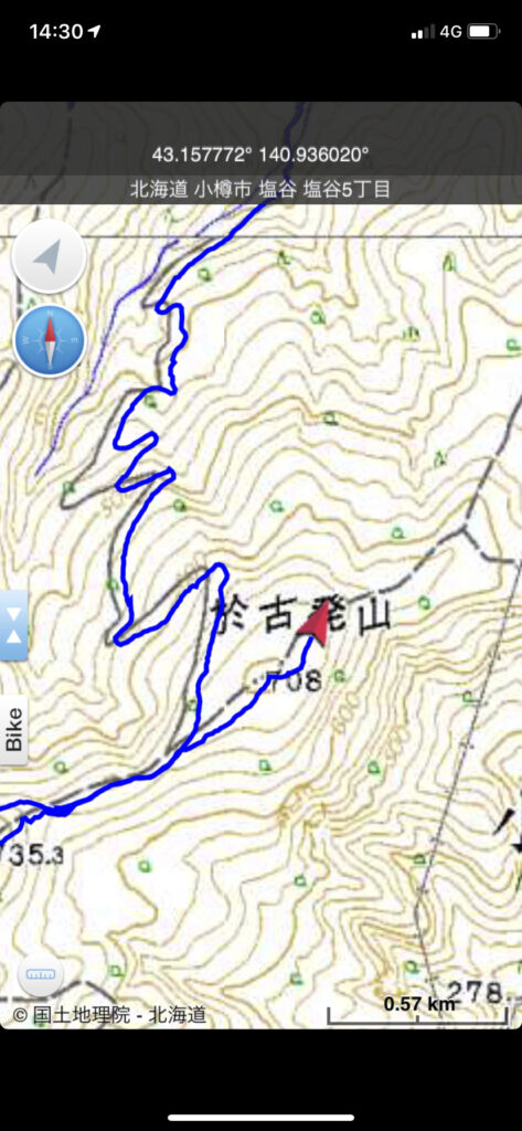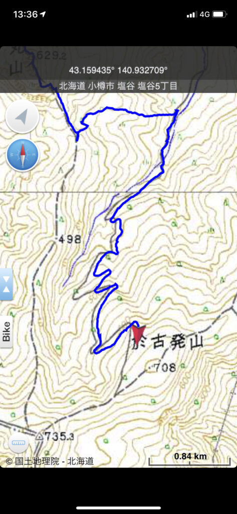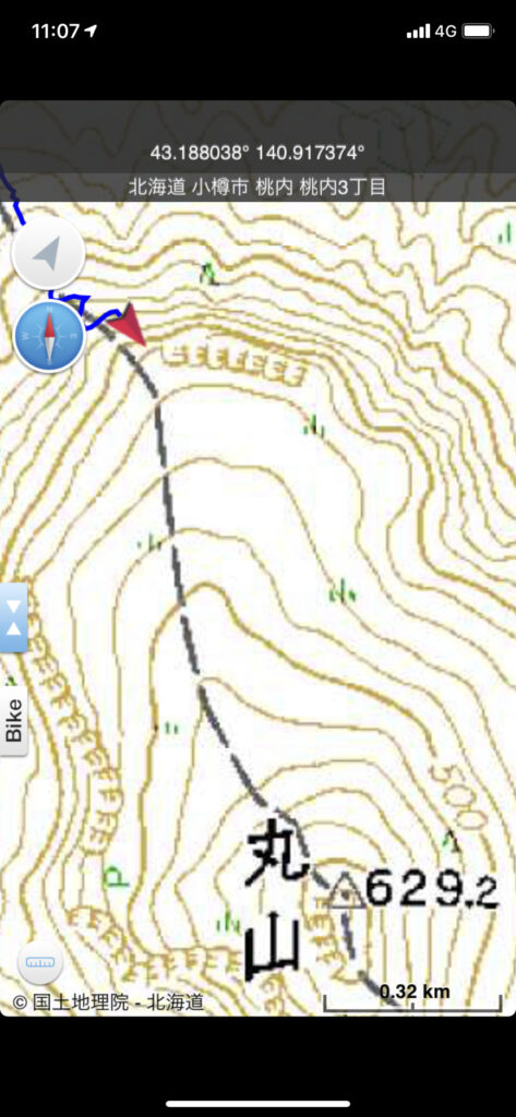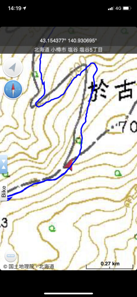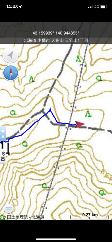 このまま、最上町方面へ行けば小樽駅が近いかとか思ったが、意を決して計画通りの最短距離で遠藤山へ進んだが、30mでササかぶりが嫌になり分岐まで引き返してきた。