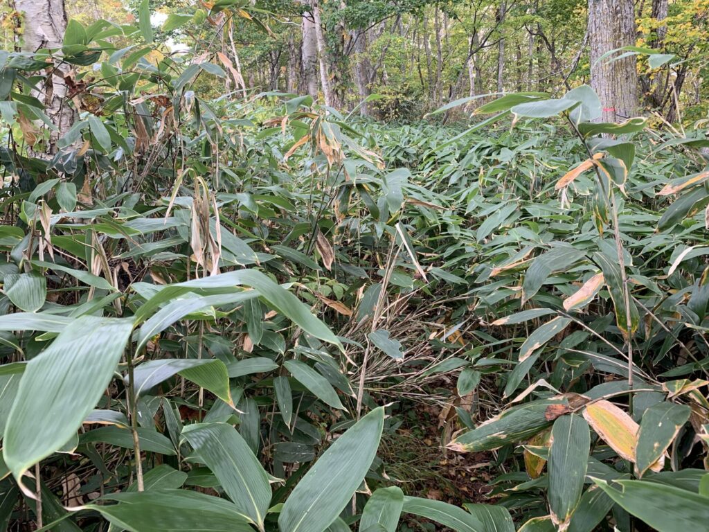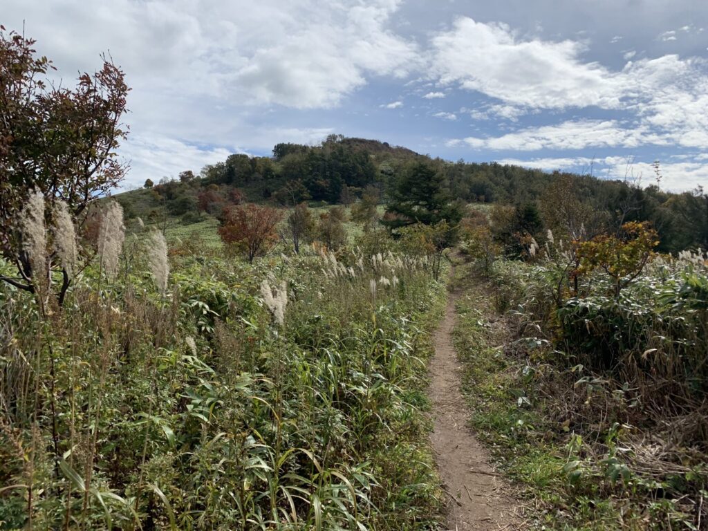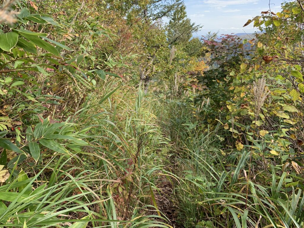 ▼遠藤山まで2.8kmだが、その道はササが刈り込んでいない