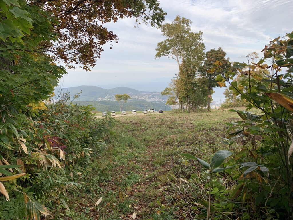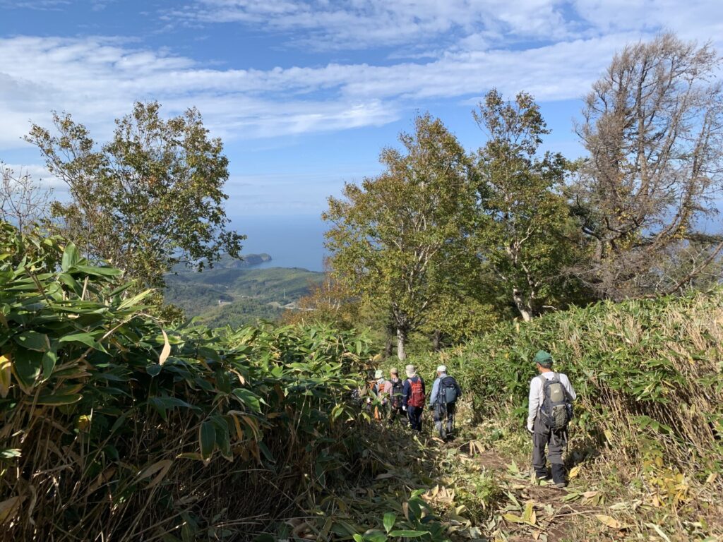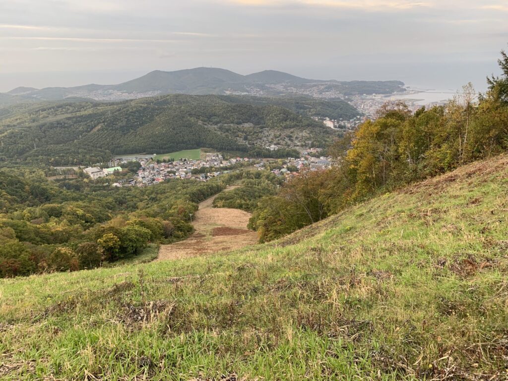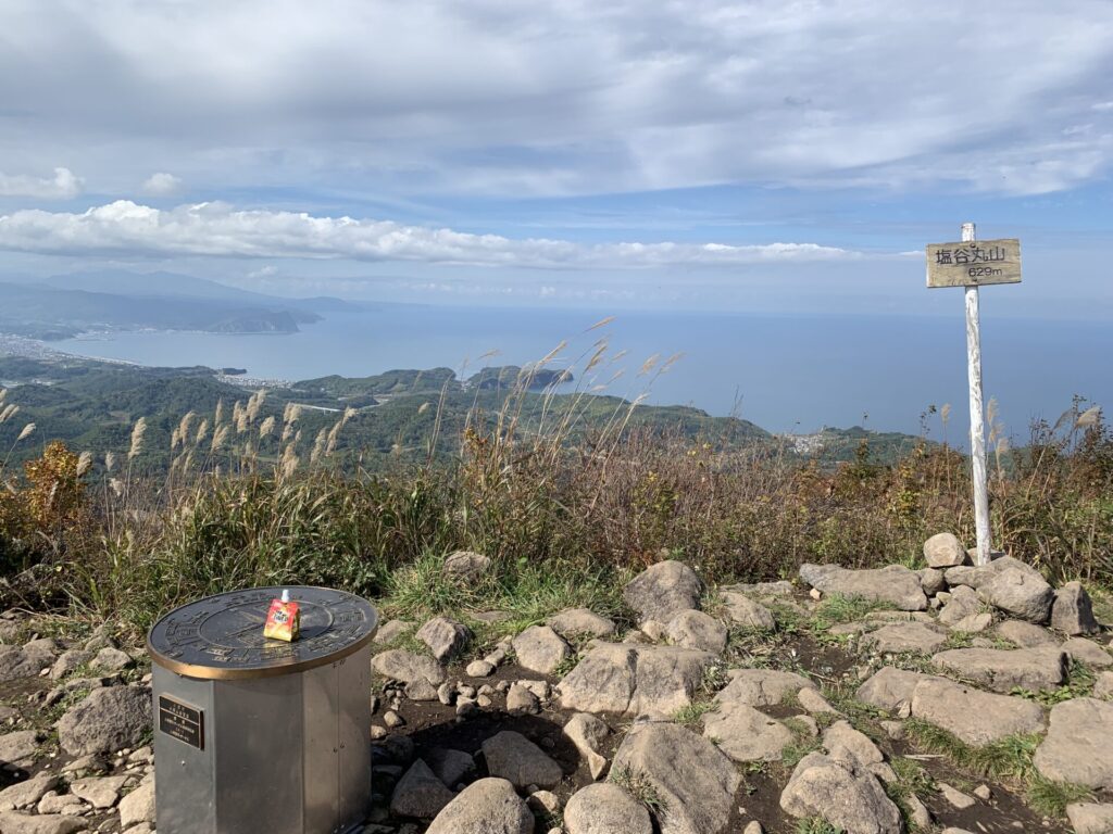 ▼すぐに山頂:積丹半島が見える。気温は25度に近い。
