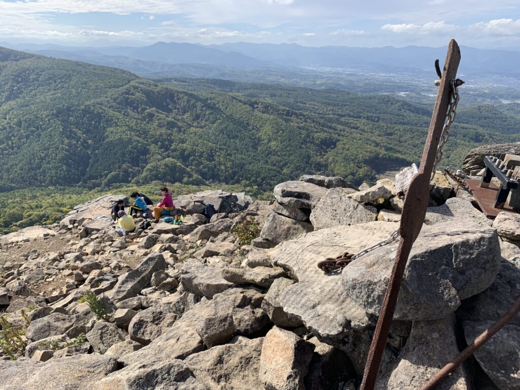 ▼山頂から30mほど進むと展望台があり10名ほどが休んでいた。何故か碇がある。