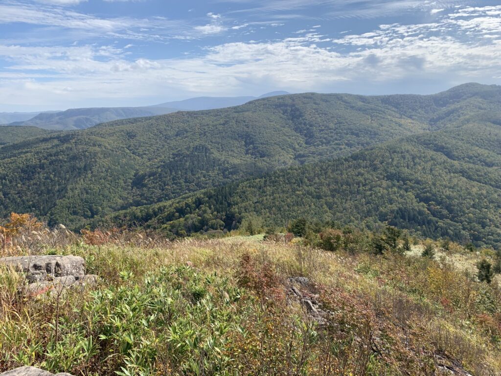 ▼稜線に乗ったところで、正面に遠藤山が見える。ここも淡々と進み遠藤山を目指す。片道1m程度のピストンで戻ってくる。