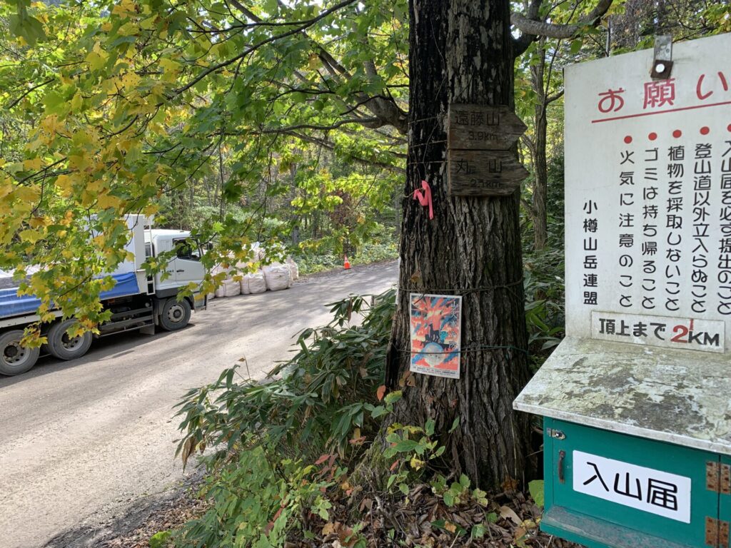 ▼後志自動車道沿いに歩くと、これが登山口かと思わせるものが有るが違う。