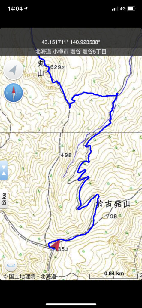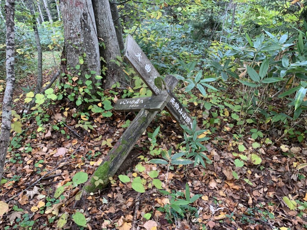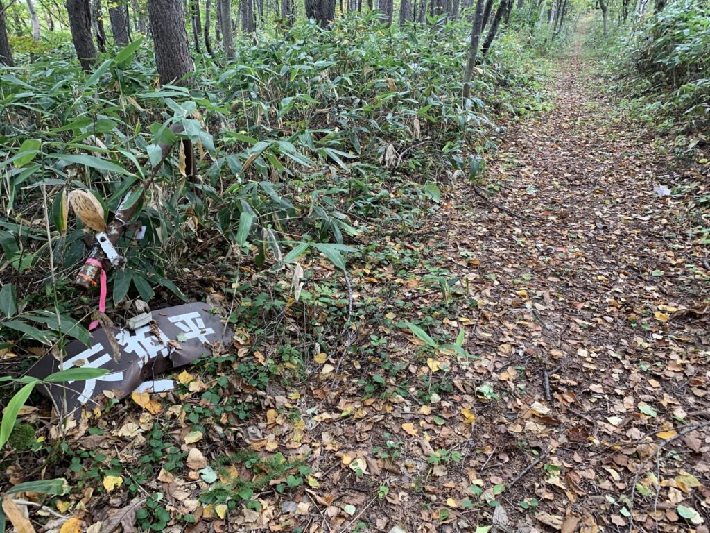 ▼於古発山(おこはちやま)から精々200m進んだところで、「おこばちへ0.9km」とは???方向も逆だし???7