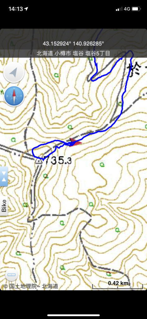 ▼小樽塩谷ICを降りてから、カーナビのデータが古すぎて少し迷う。