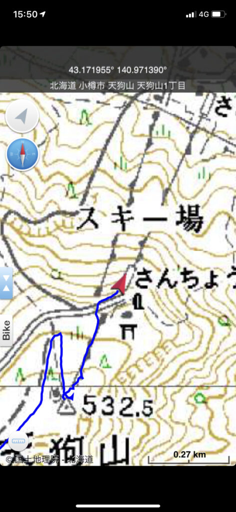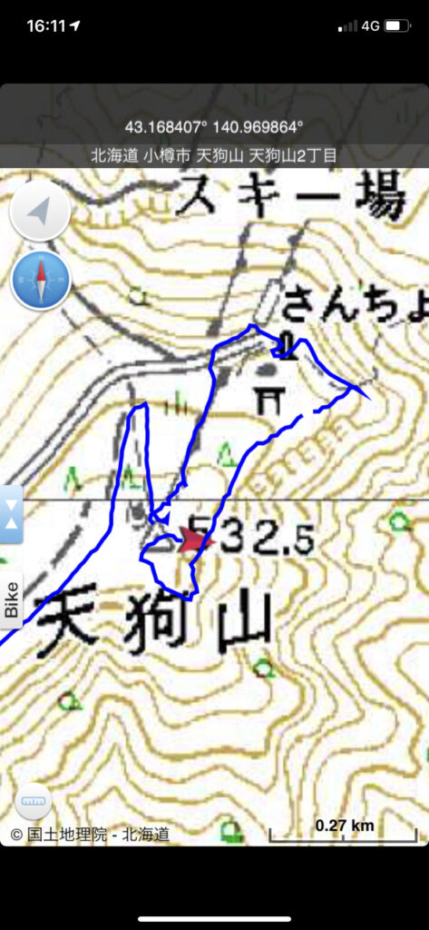 ▼位置:天狗山は近い! 予定以上に距離が伸びたりリフト量が増えたが足の調子はすこぶる良い!