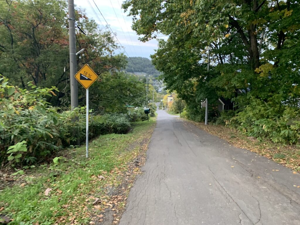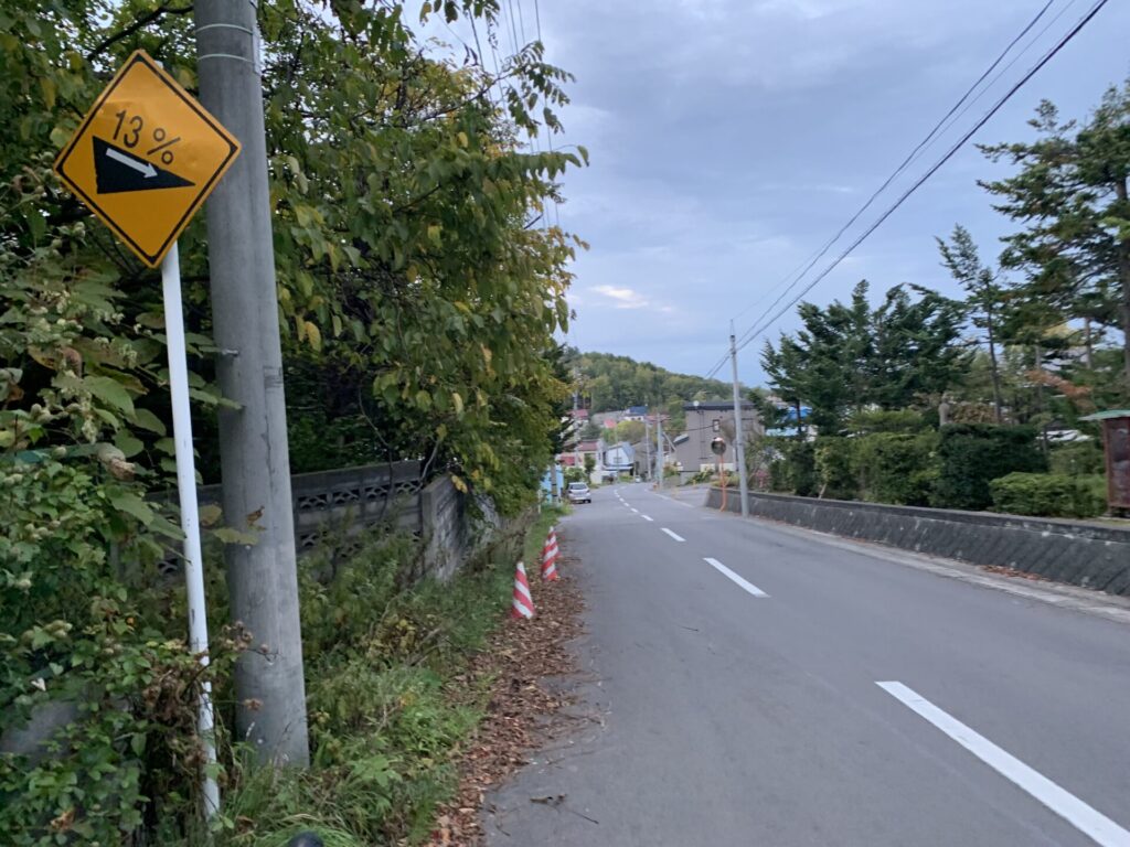 ▼舗装道路に出た。18% 冬は四駆でも登れないな!