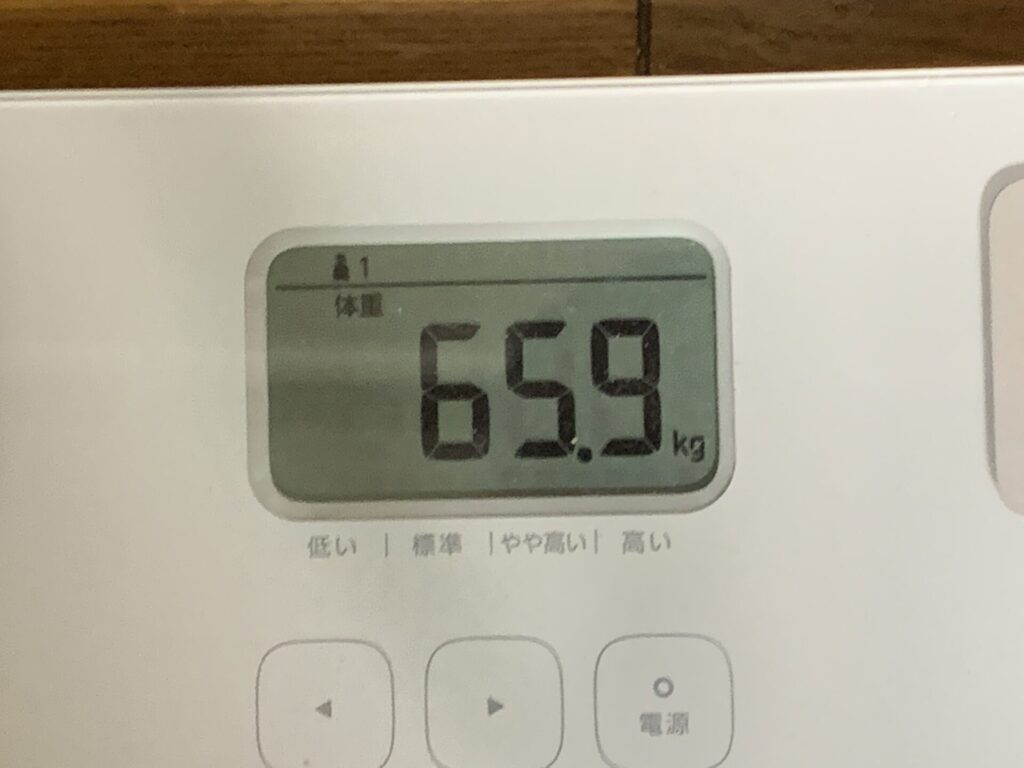 ▼65.9kg とうとう66kgを切った。目標は64kg台。