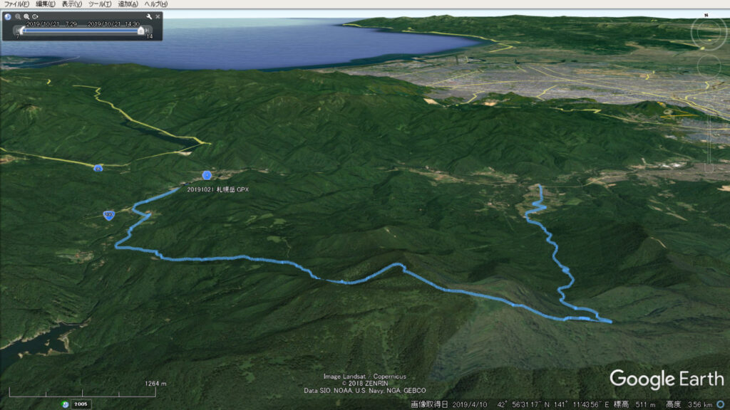 最低/最高高度: 231 m / 1287 m (高度差1056m)