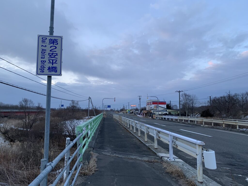 ▼道道舞鶴追分線を南へ。「第2安平橋」をみてなるほどと思った。