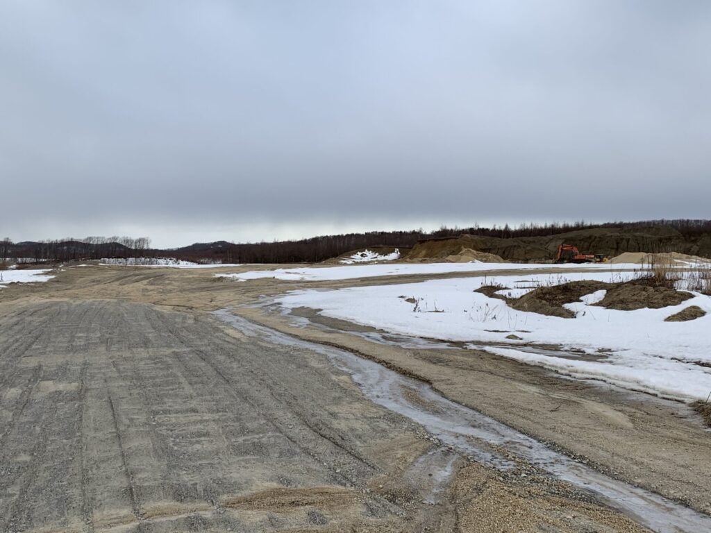 ▼舗装道路を歩くのは終わり。土取場だろうか?