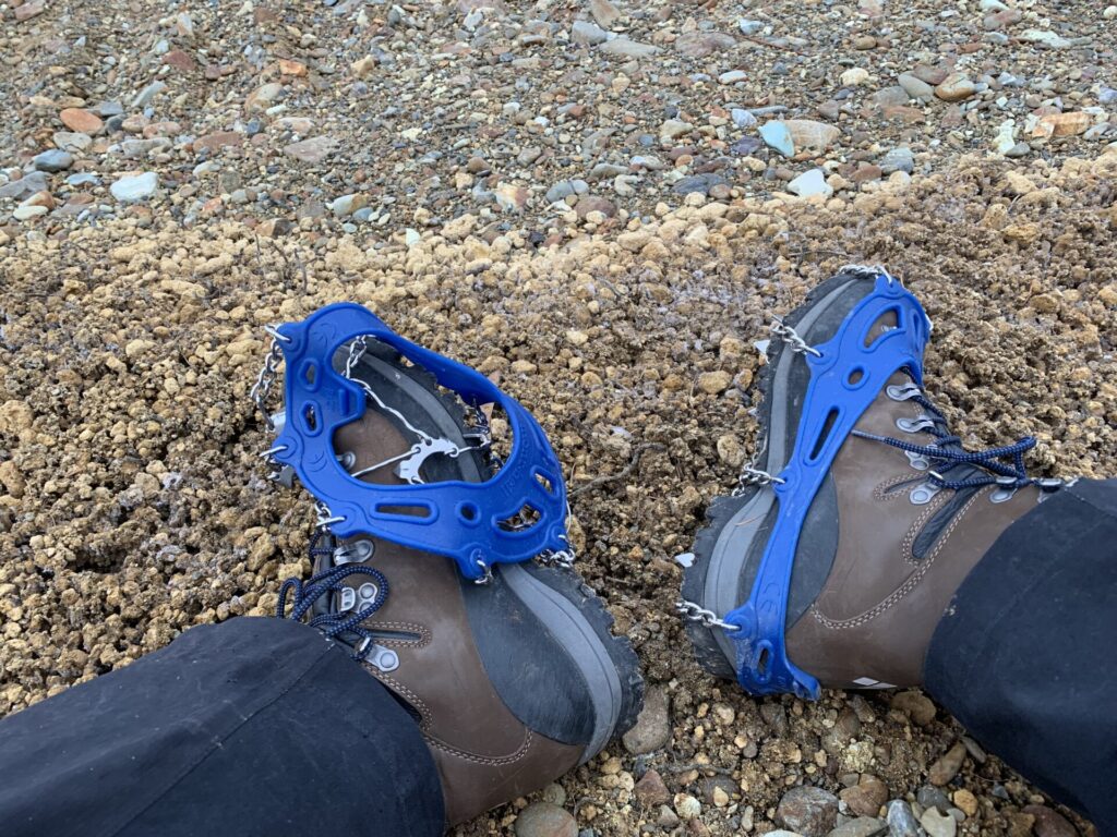 つけて見ると、思いのほかゴムが伸びるので、アイゼンより装着が楽だ。