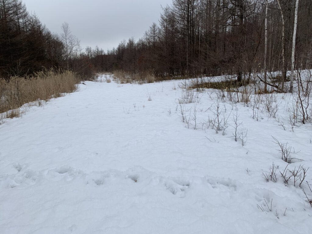 ▼思ったより雪が多い。鹿の深い足跡が方々にあるが、鹿の鳴き声は全くしない。