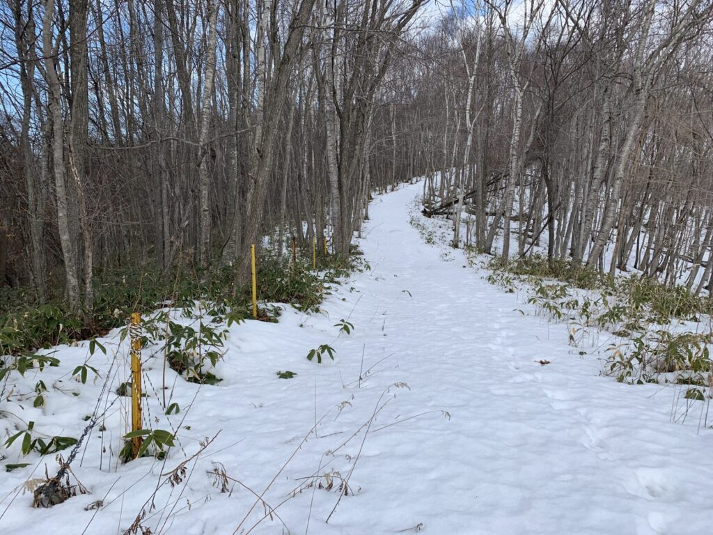 あまりに雪が薄いと、笹藪での踏み抜きが心配だ。