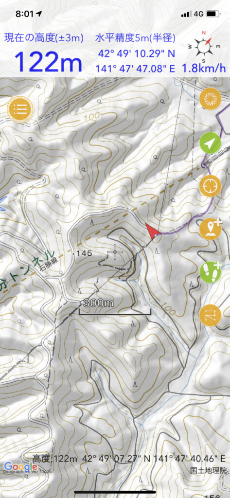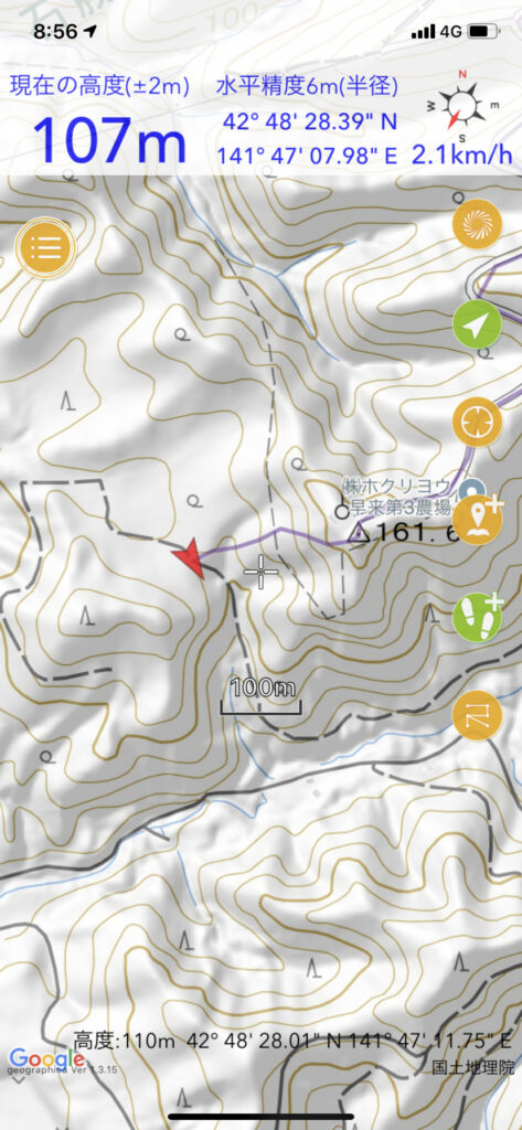問題は、等高線から読み取れる沢地系が渡れるレベルかどうかである。